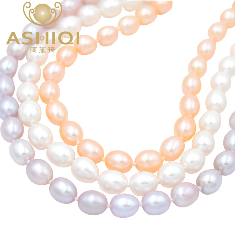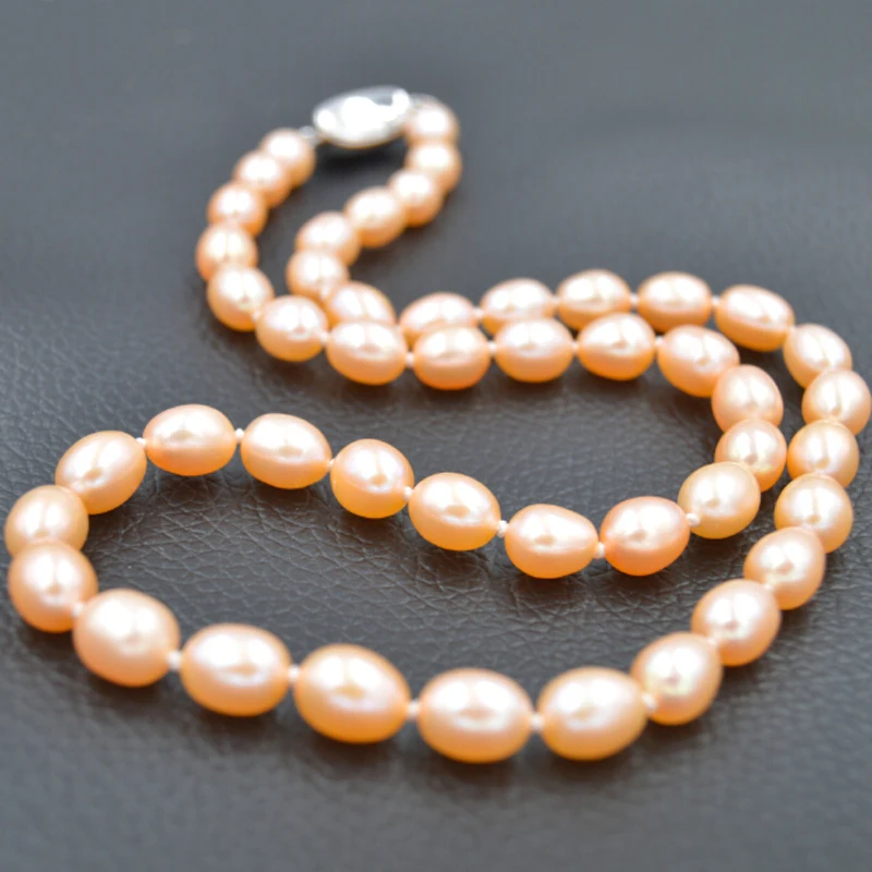 7-8mm Natural pearl Necklace Rice Pearl Jewelry For Women Classic Mother's d gift