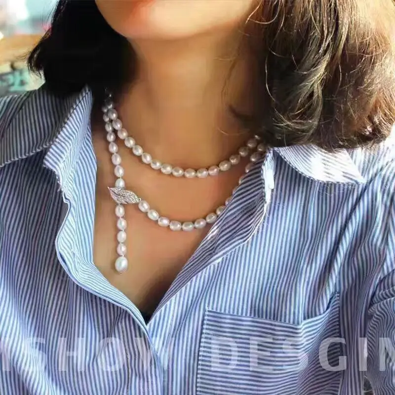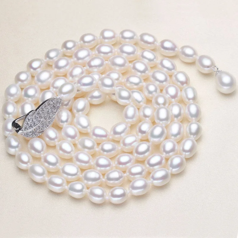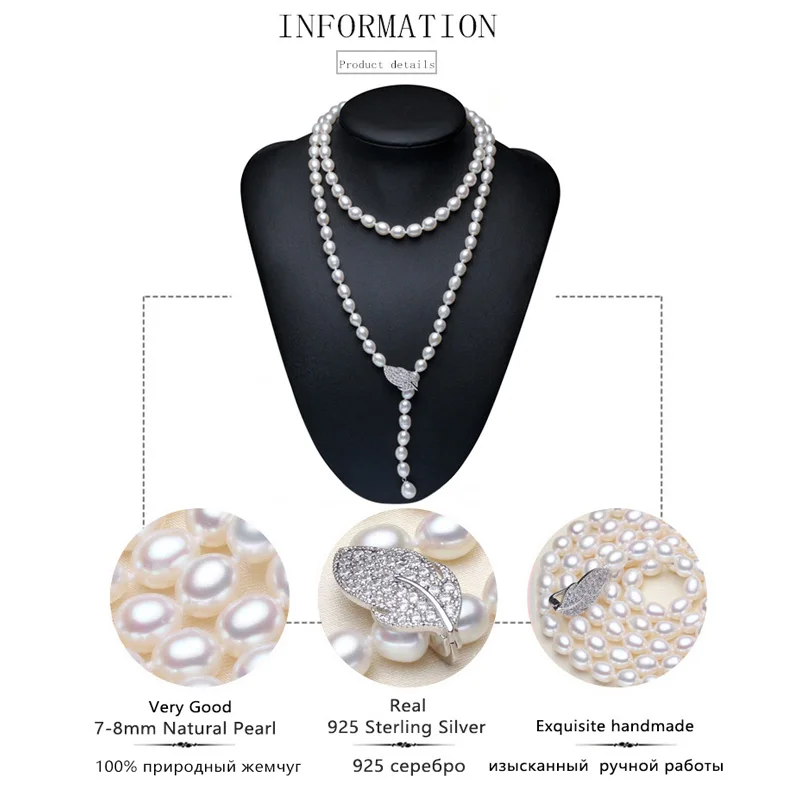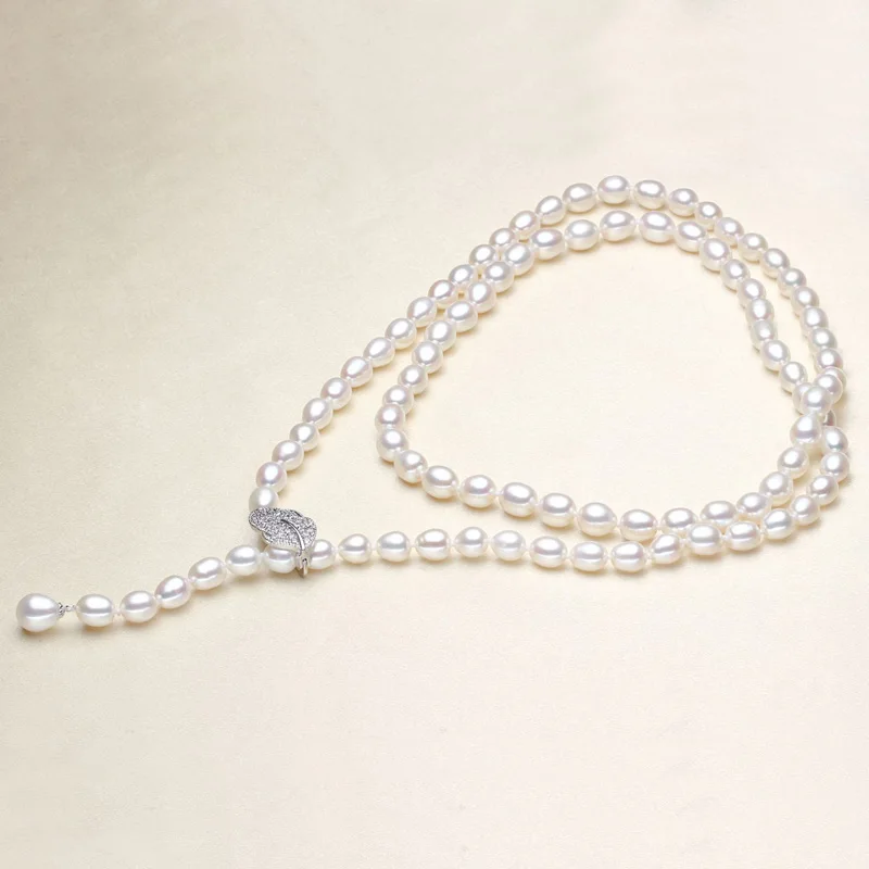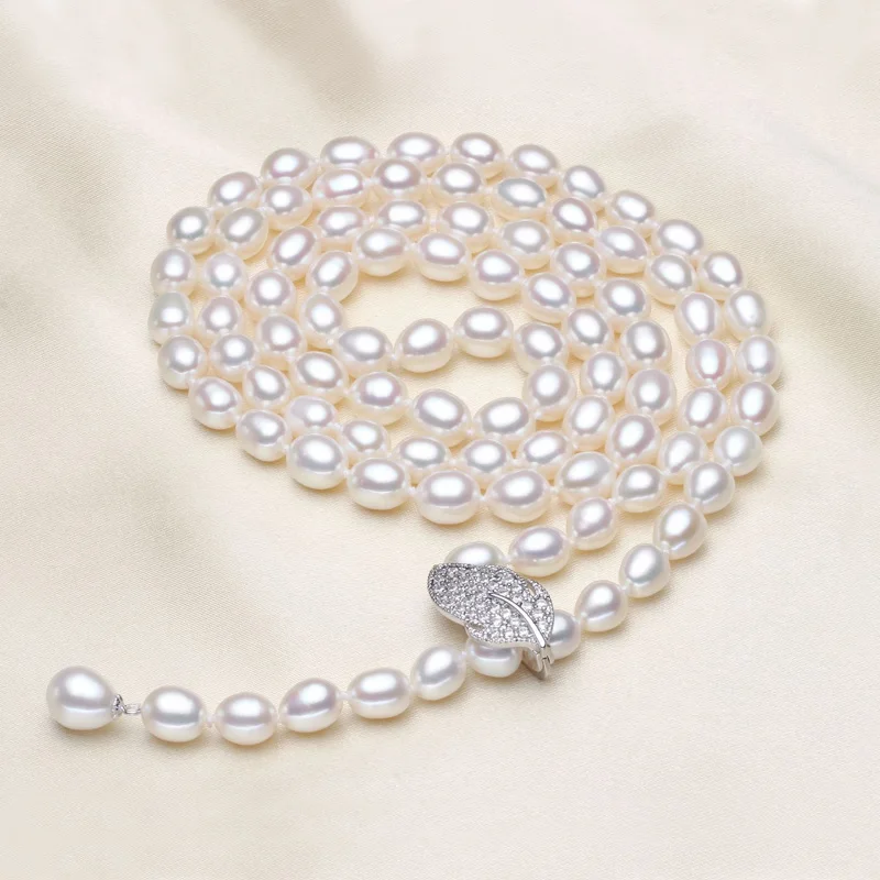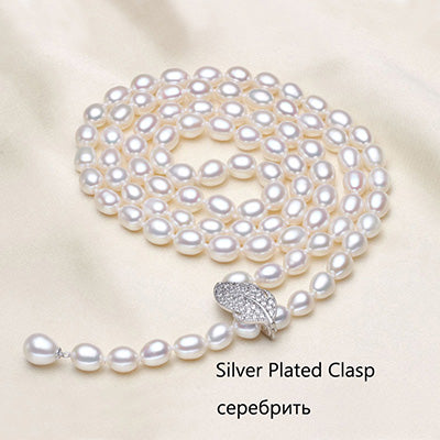 90CM Cultured Natural Pearl Necklace 925 silver Long Sweater chain Fashion collocation Jewellery women gift