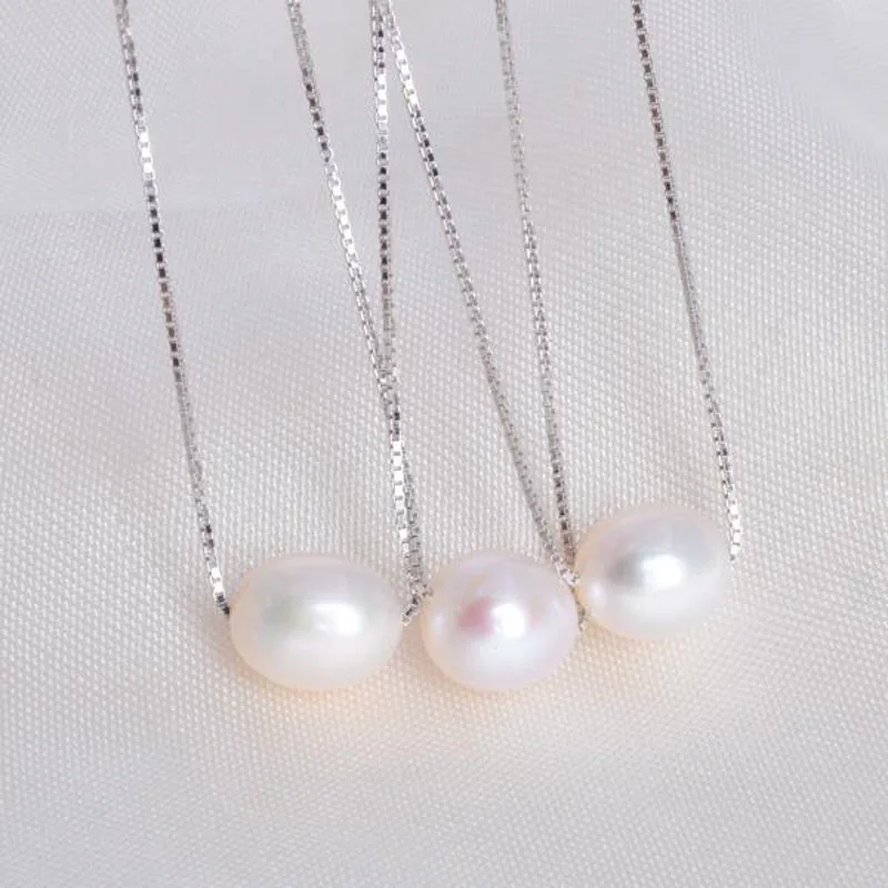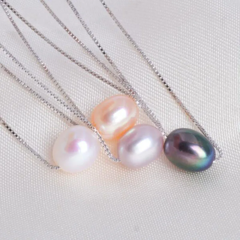 925 sterling silver pearl necklaces pendant 7-8mm natural pearls jewelry