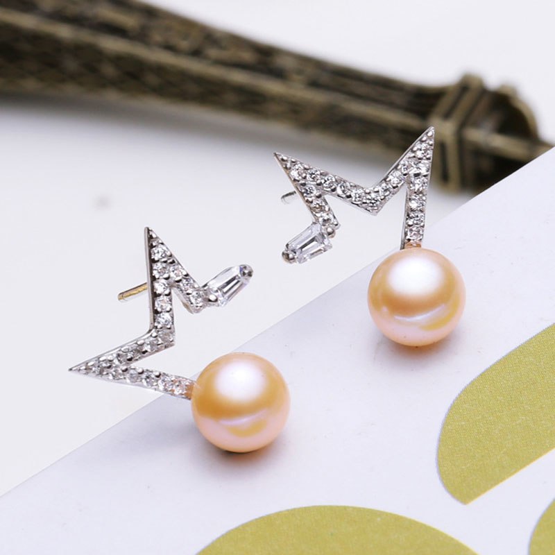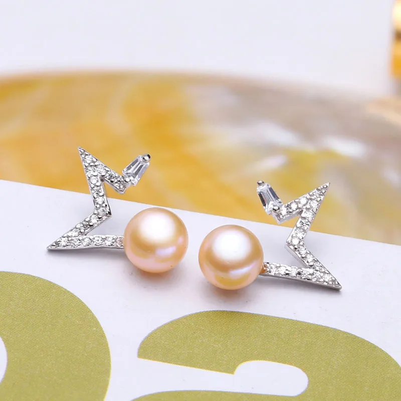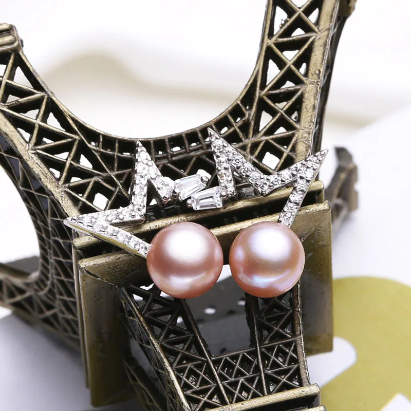 925 Sterling Silver Frewshwater Pearl Star Earrings White 7-8mm Natural Pearl Jewelry for women AAA Zircon