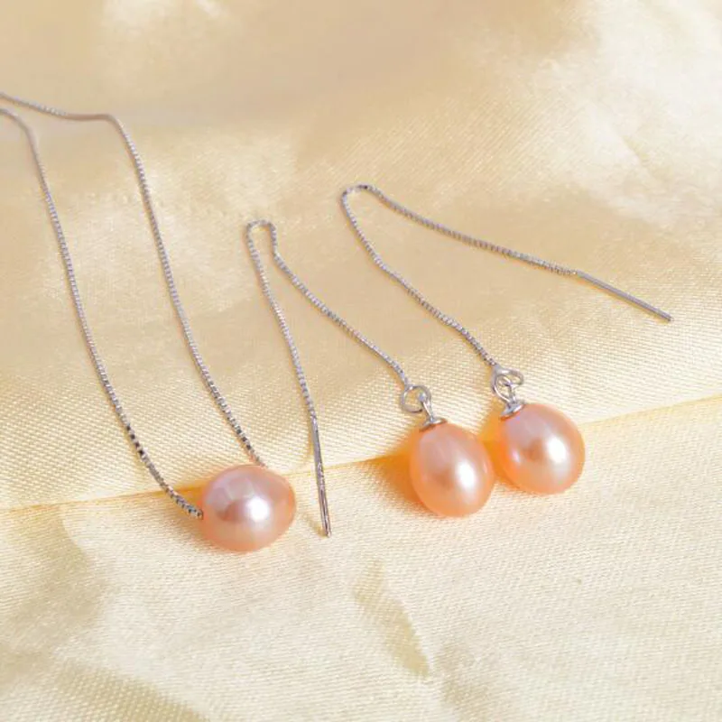 925 Sterling Silver Jewelry Set Pearl Necklaces Earrings 7-8mm Rice Natural Pearls for women