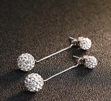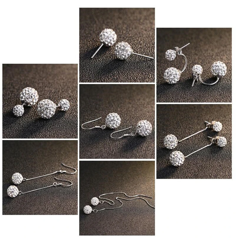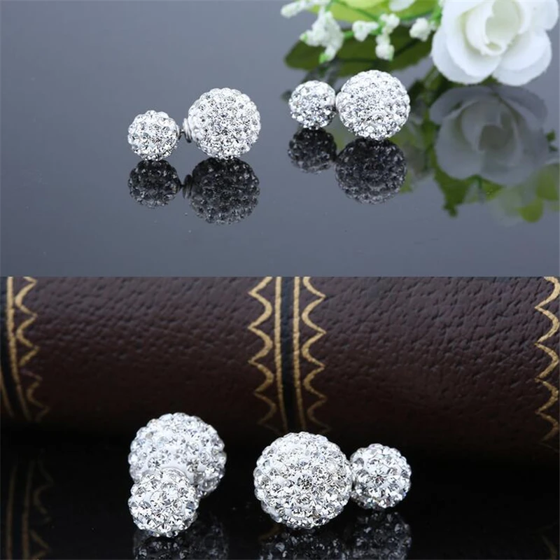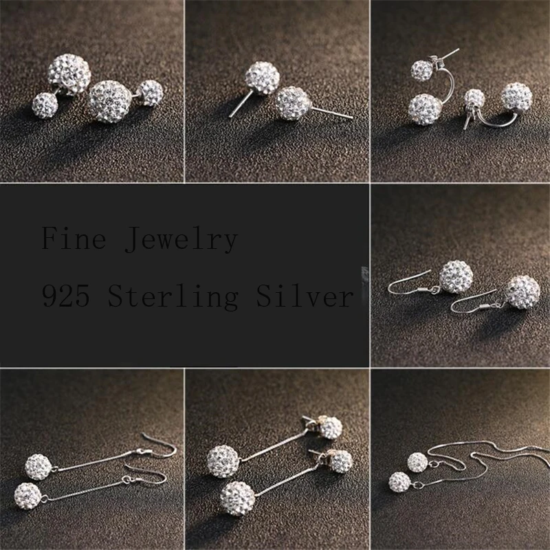 Luxury Fine Double-Ball 925 Sterling Silver Women Stud Earrings Sterling-Silver-Jewelry Brand SSE001-F