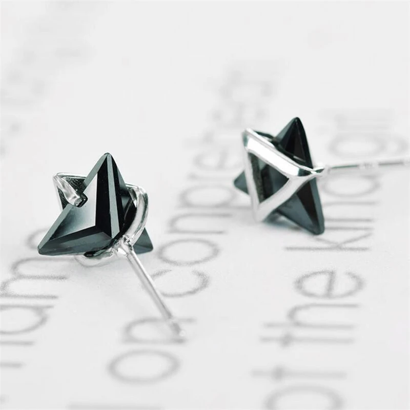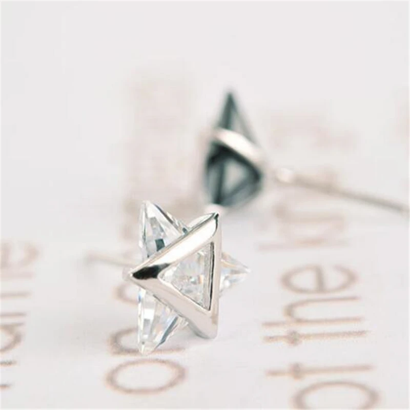 Simple Six Stars 925 Sterling Silver Fashion Triangle Stud Earrings for Women Fine 925 Silver Jewelry Earrings EWS425