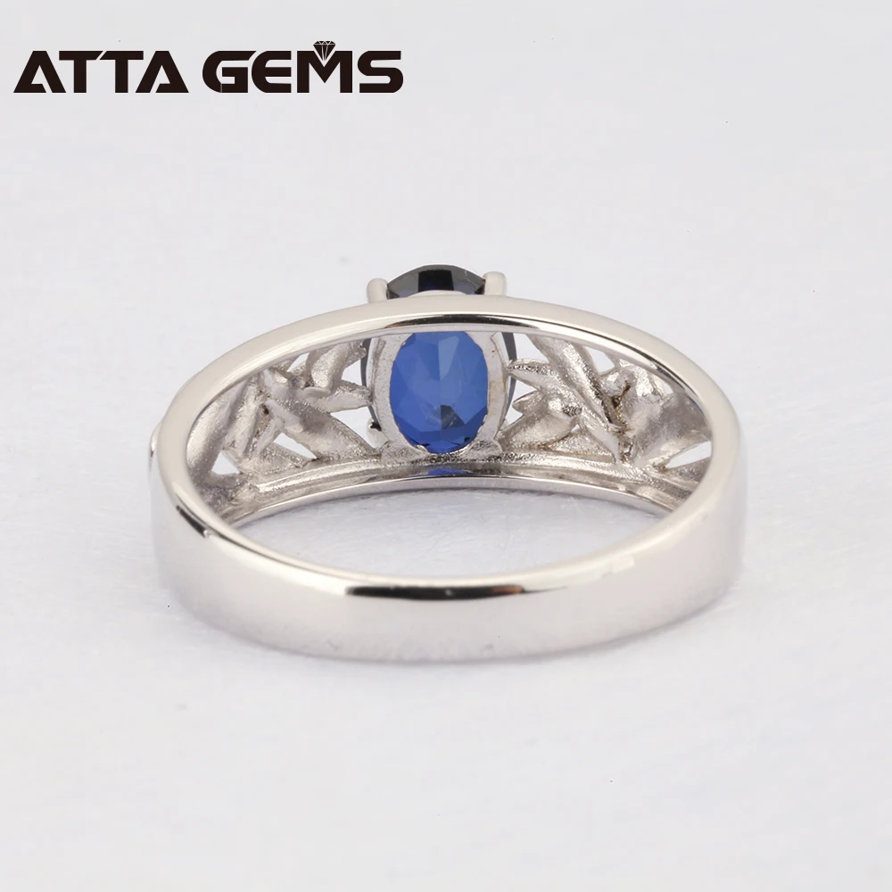 Blue Sapphire Silver Ring 1.5 Carats Sapphire Stone in Oval 6mm*8mm Deep Blue Color And Clean Quality For Birthd Gift