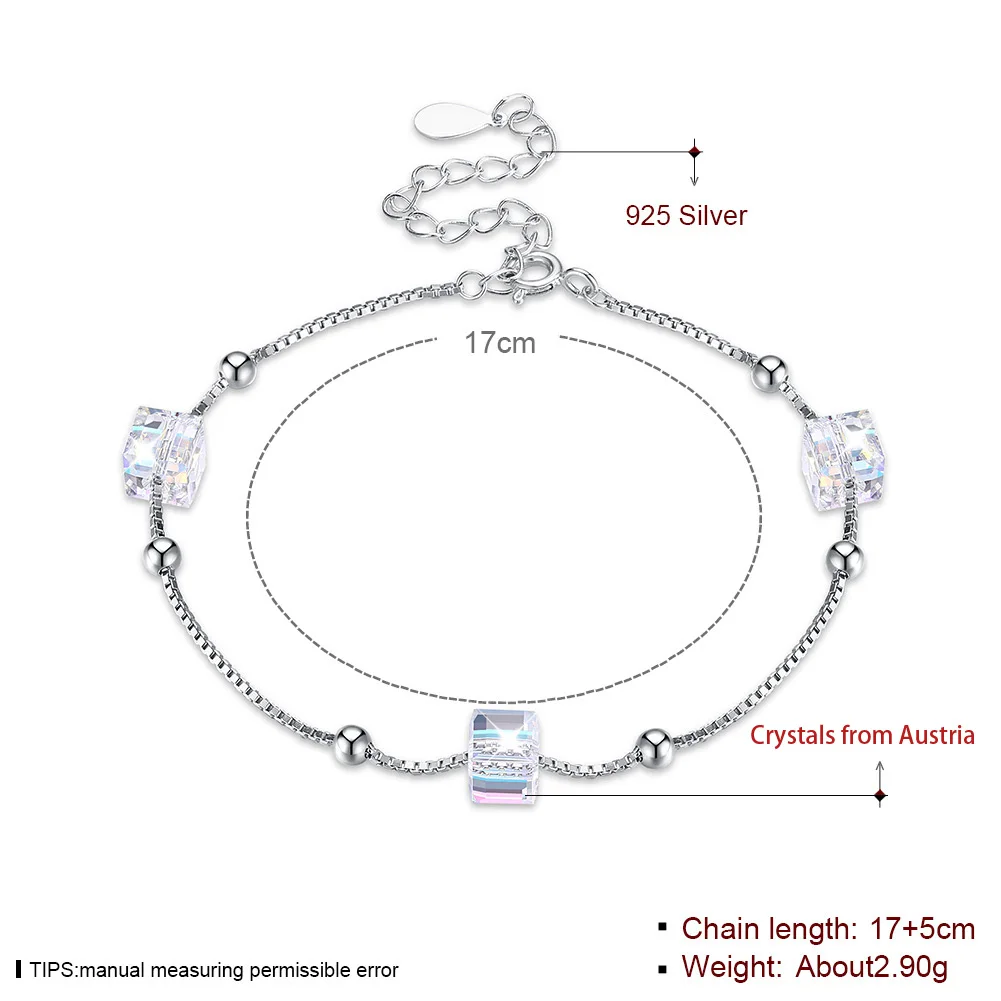 Austria Elements Crystal Three Crystals Ball Bracelet for Women European and American Style Fashion Sterling Silver 925 Square