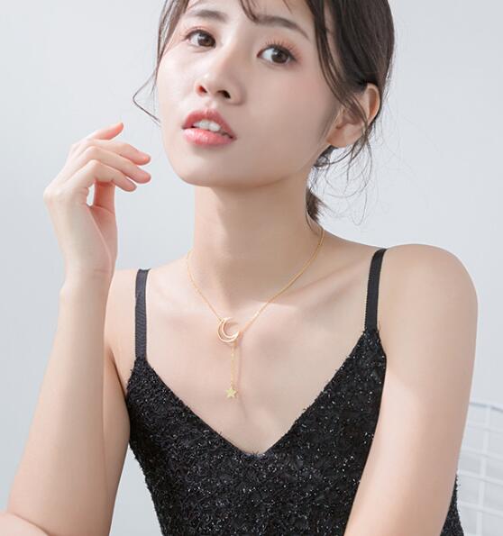 Authentic 100% REAL. 925 Sterling Silver fINE Jewelry Open Crescent Moon &Star Lariat Y pendant Necklace GTLx1766