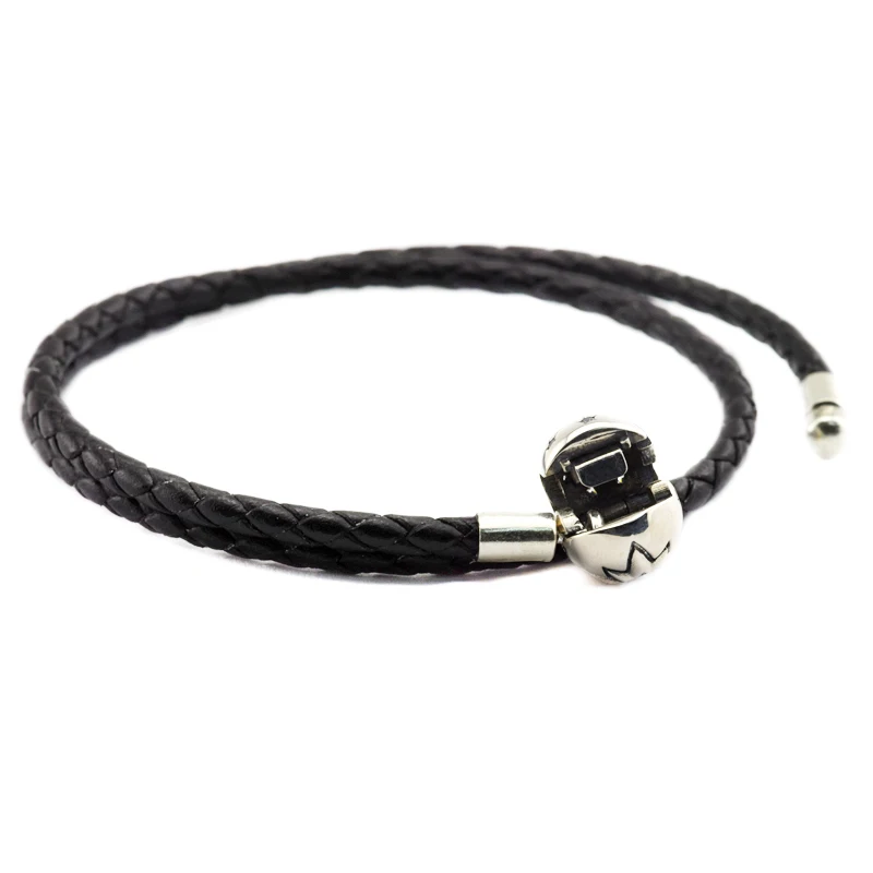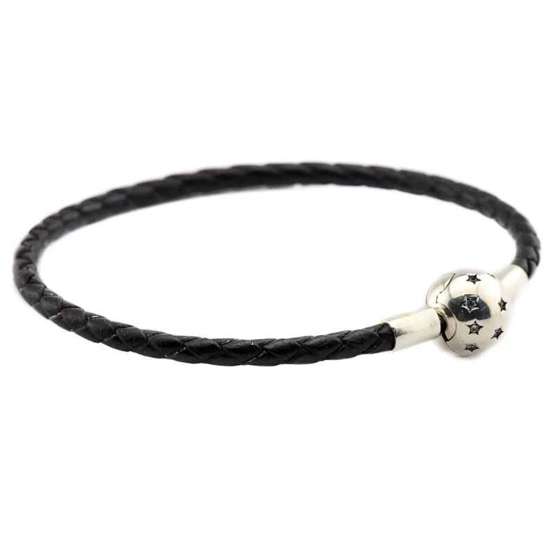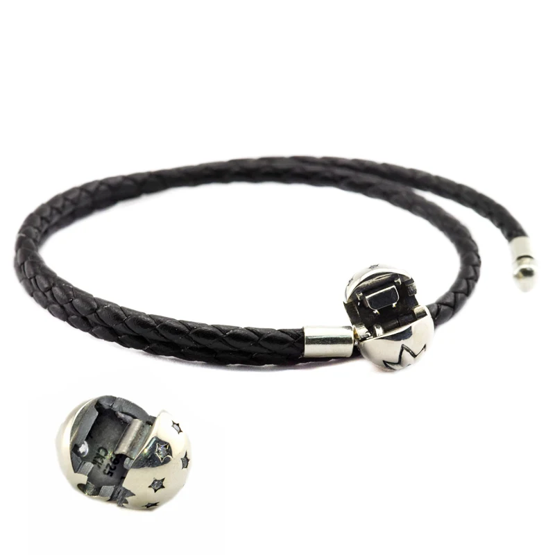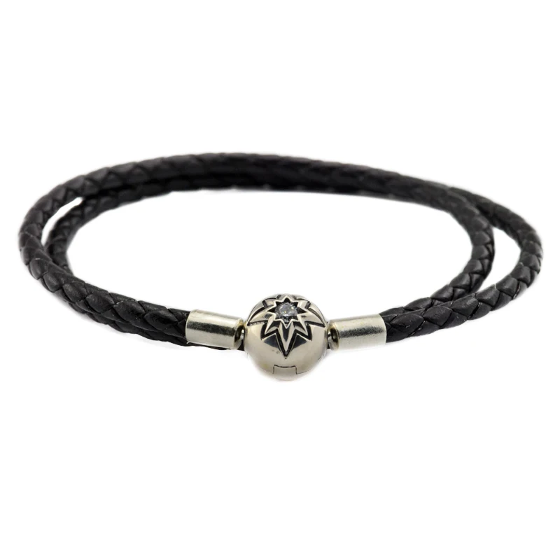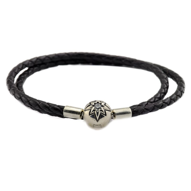 Authentic 925 Sterling Silver Jewelry Black Leather Bracelets