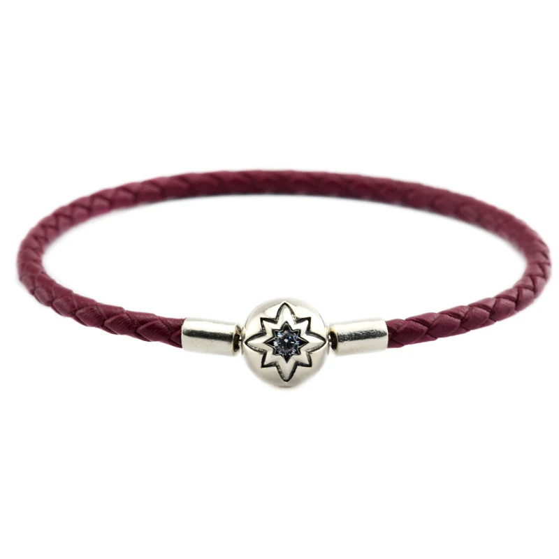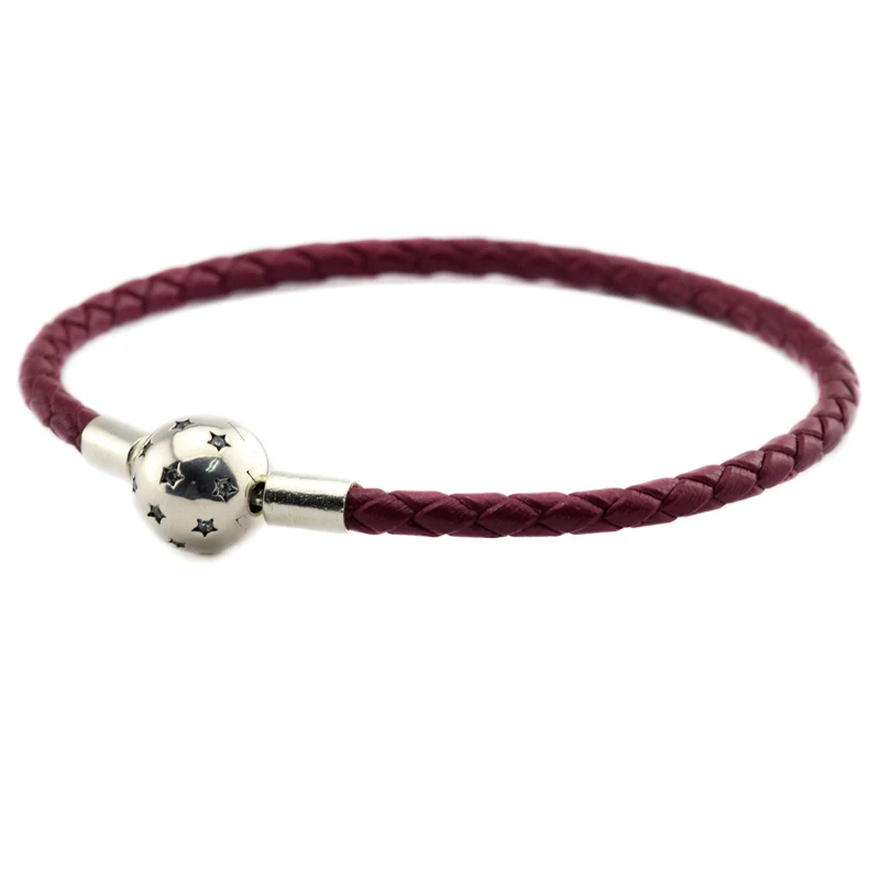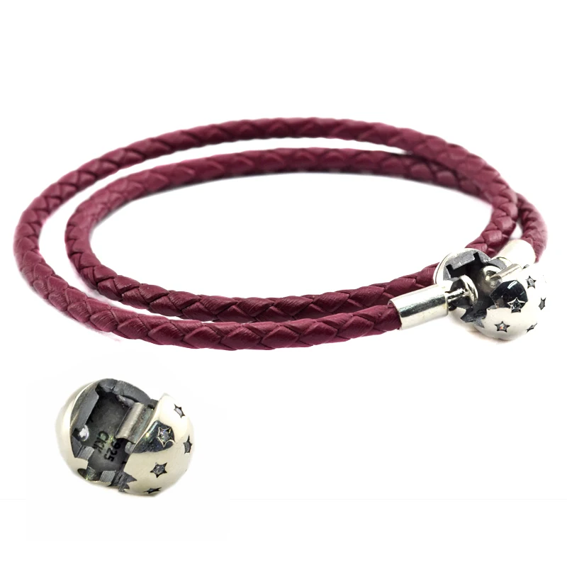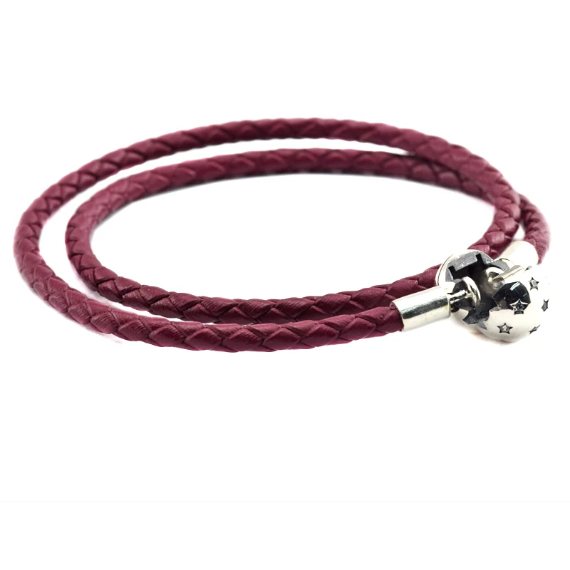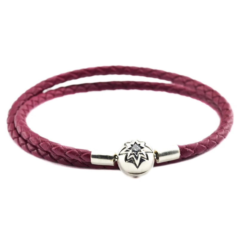 Authentic 925 Sterling Silver Jewelry Burgendy Leather
