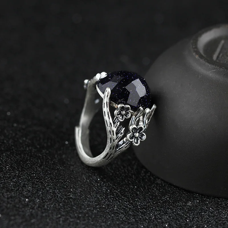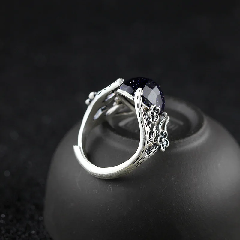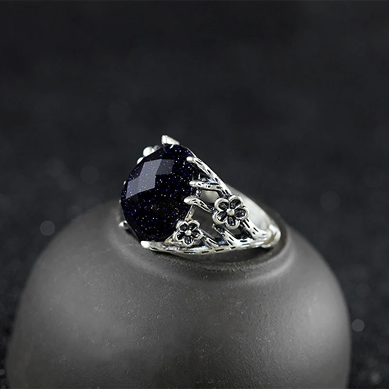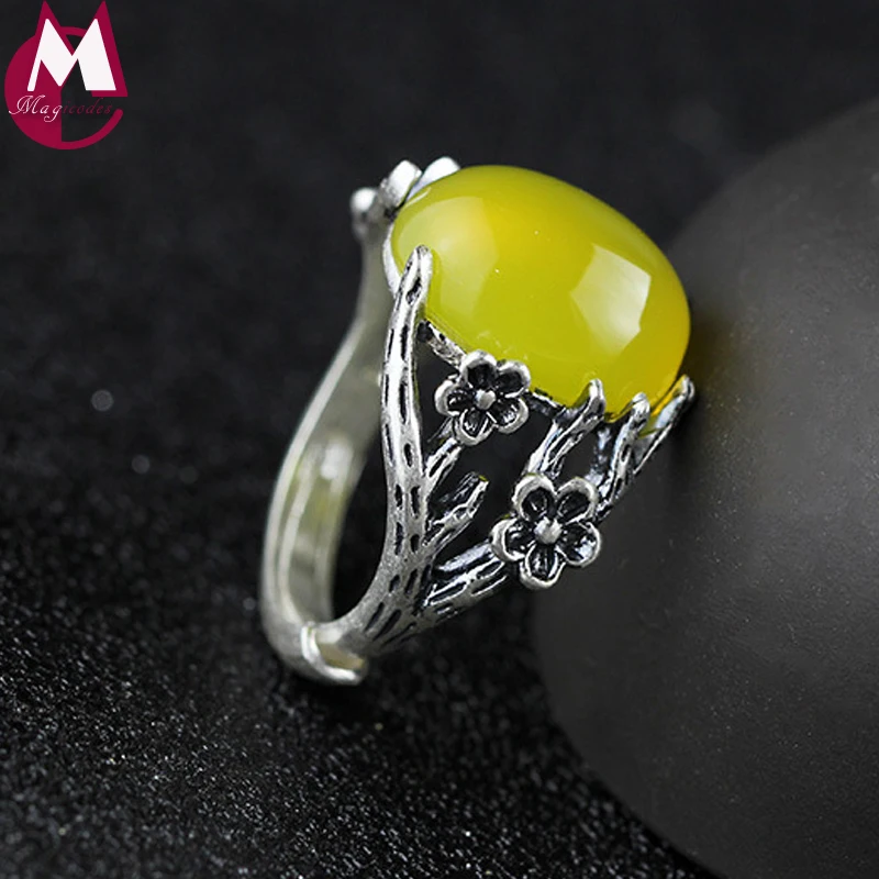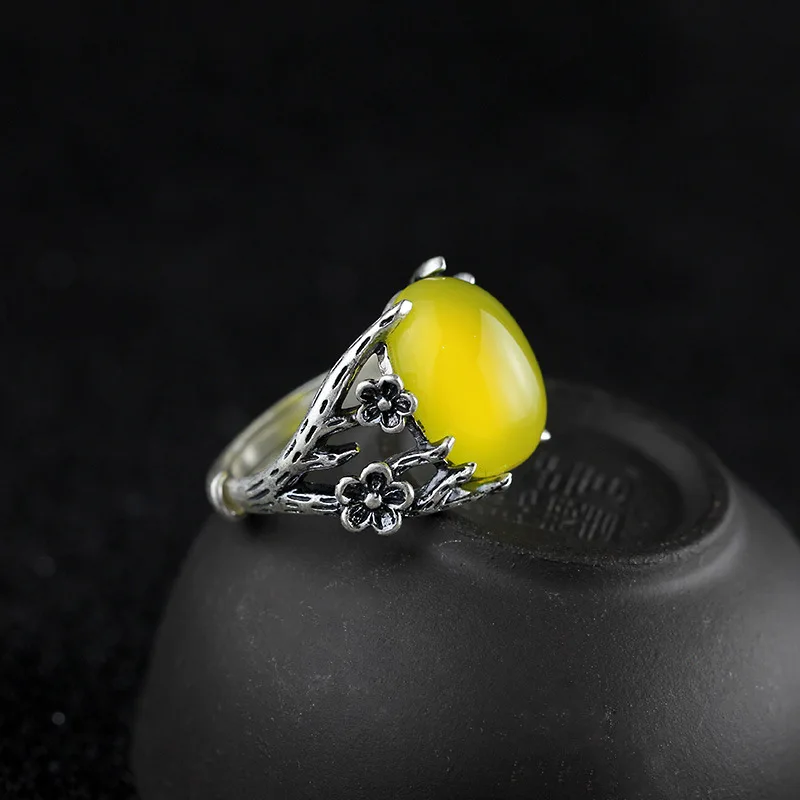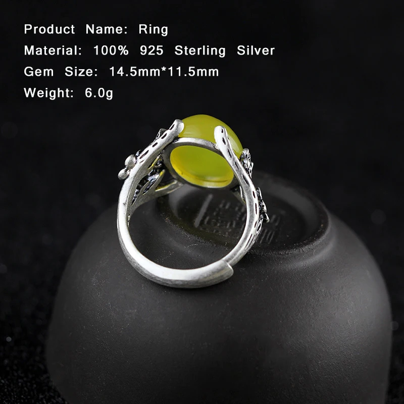 Authentic 925 Sterling Silver Rings Female Fine Vintage Flowers Plum Blossom Open Jade Ring For Women Jewelry Mother Gifts SR41
