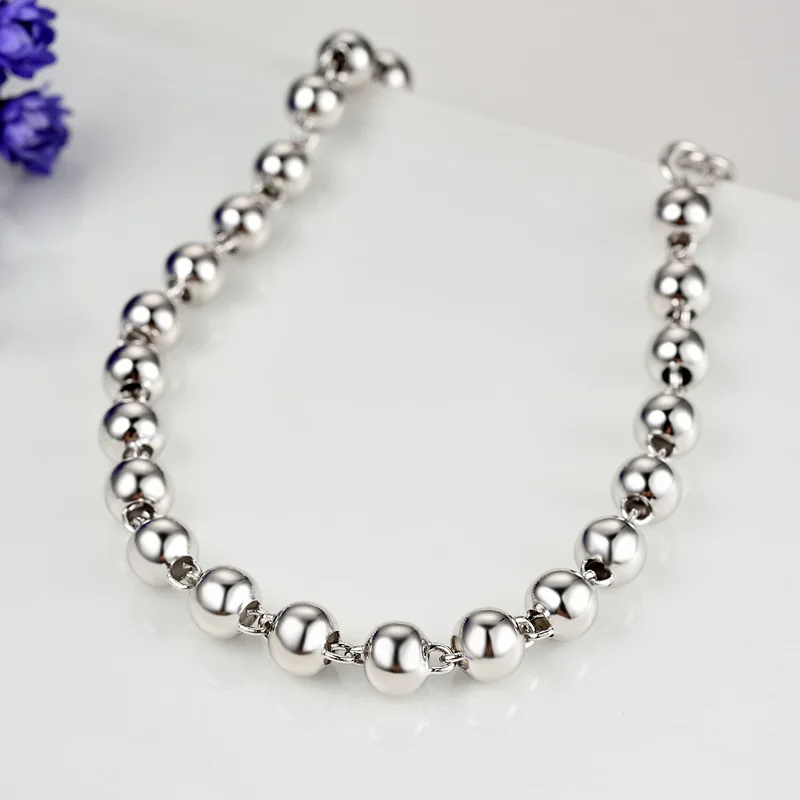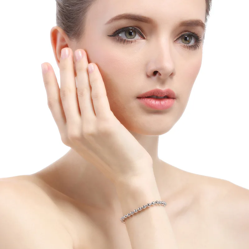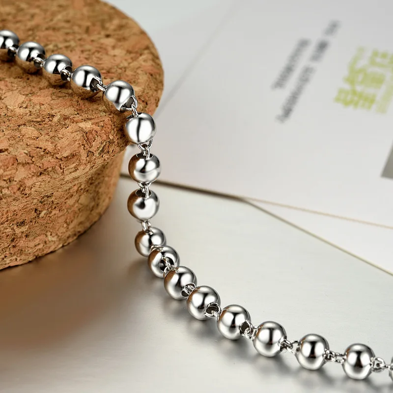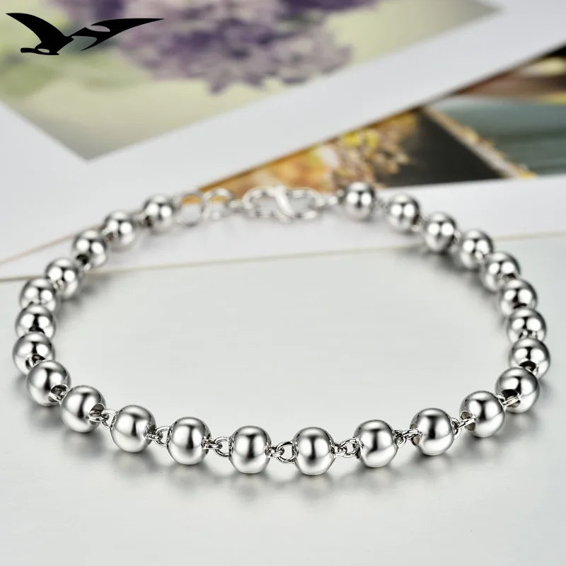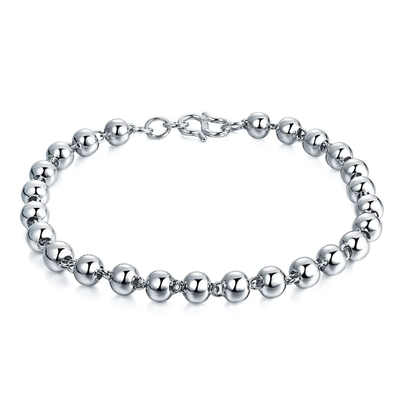 Authentic 990 Sterling Silver Smooth Hollow Beads Prayer Beads Bracelet 925 Silver Bangles For Women High Quality Jewelry