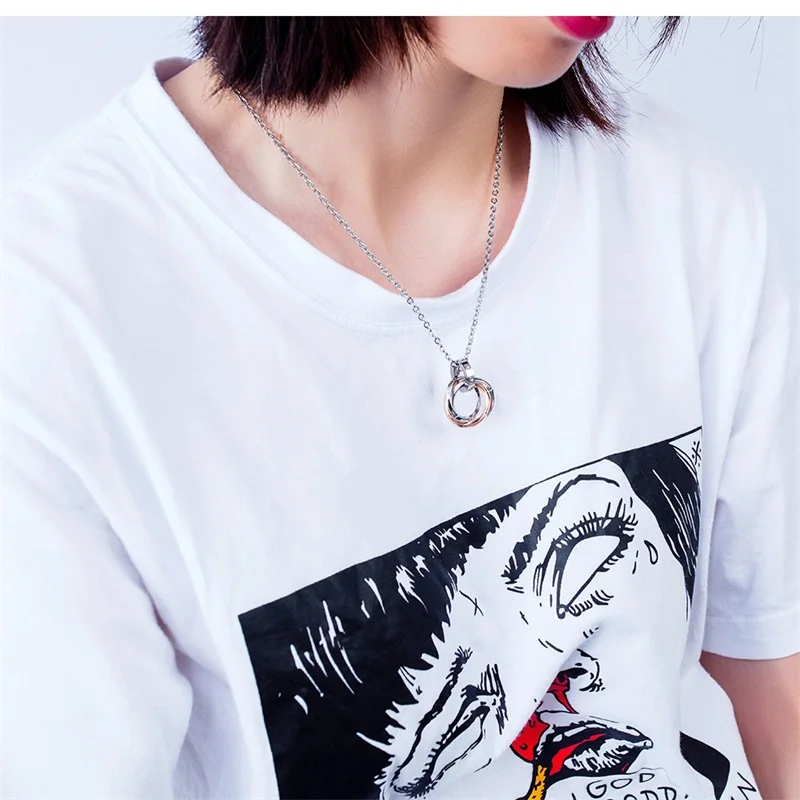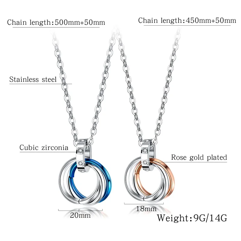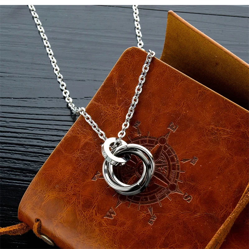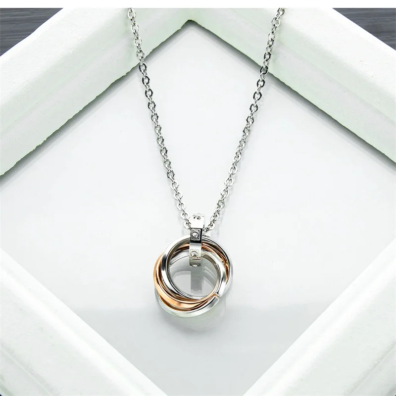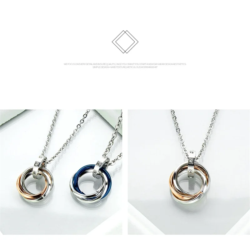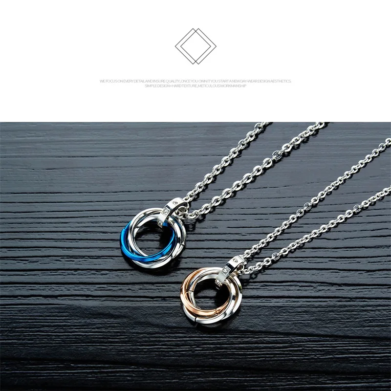 AZIZ BEKKAOUI Stainless Steel Couple Necklaces Three Cricle Pendant Necklaces For Lover Jewelry For Gifts