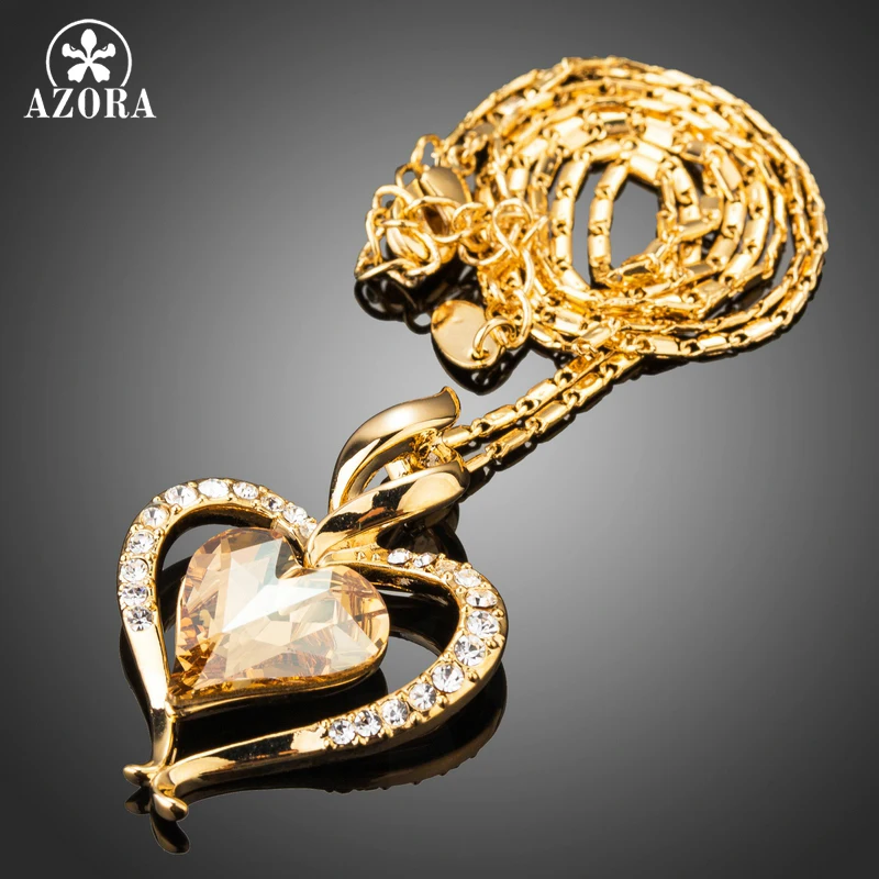 Long Link Chain Heart Austrian Crystal Gold Color Heart Pendant Necklace for Valentine's D Gift of Love TN0204