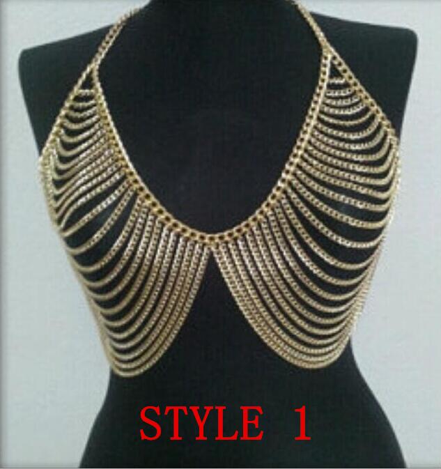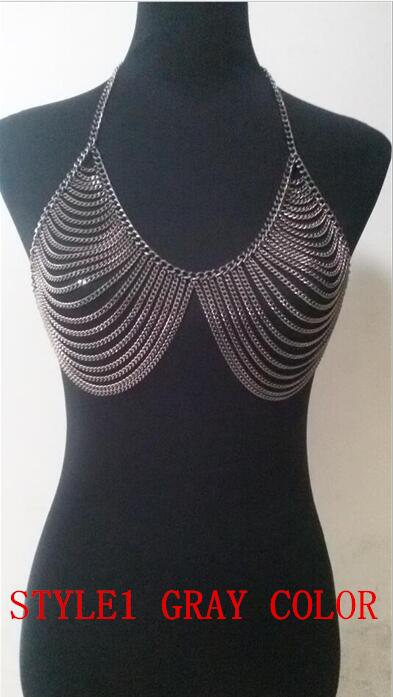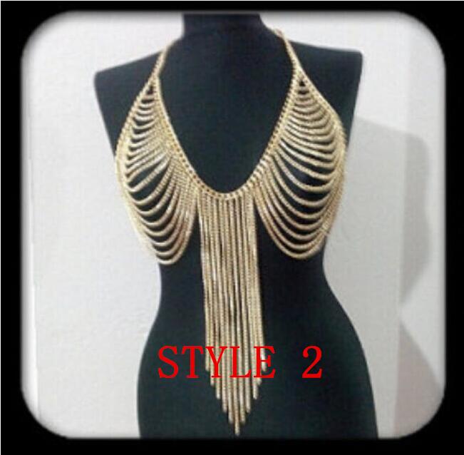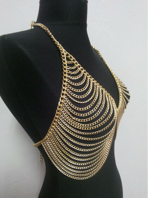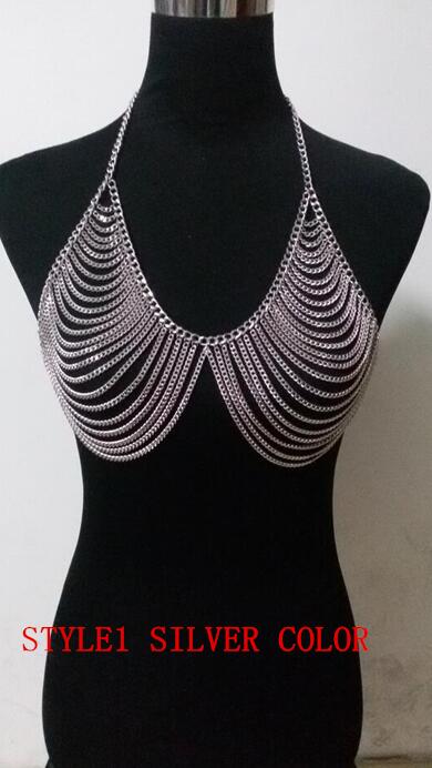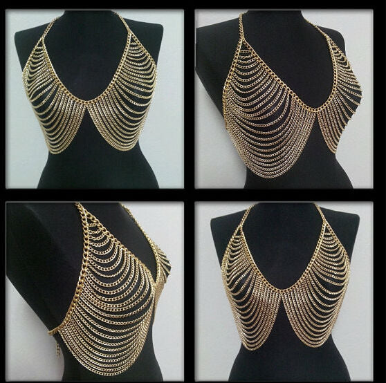 B669 Women Gold Colour Necklack Body Chains Jewelry Unique Design Sexy Bra Chains Jewelry 3 Colors