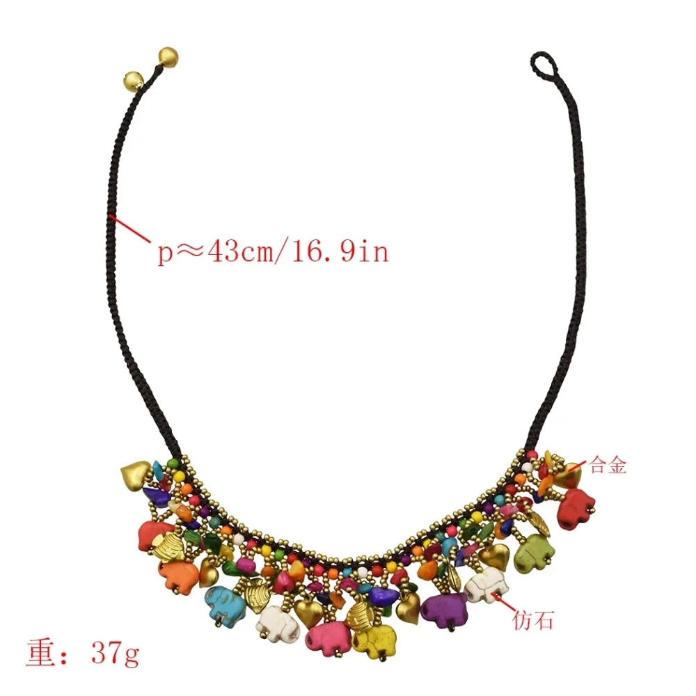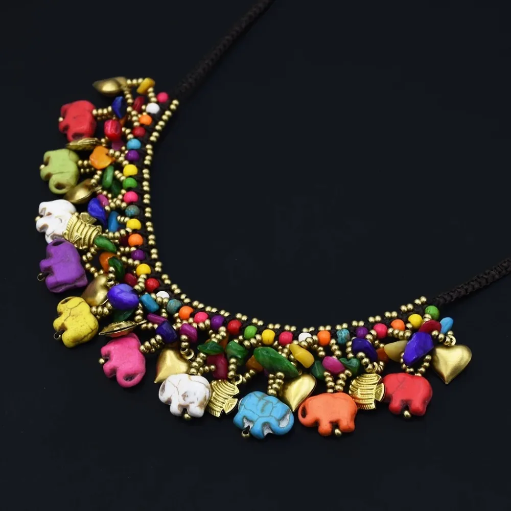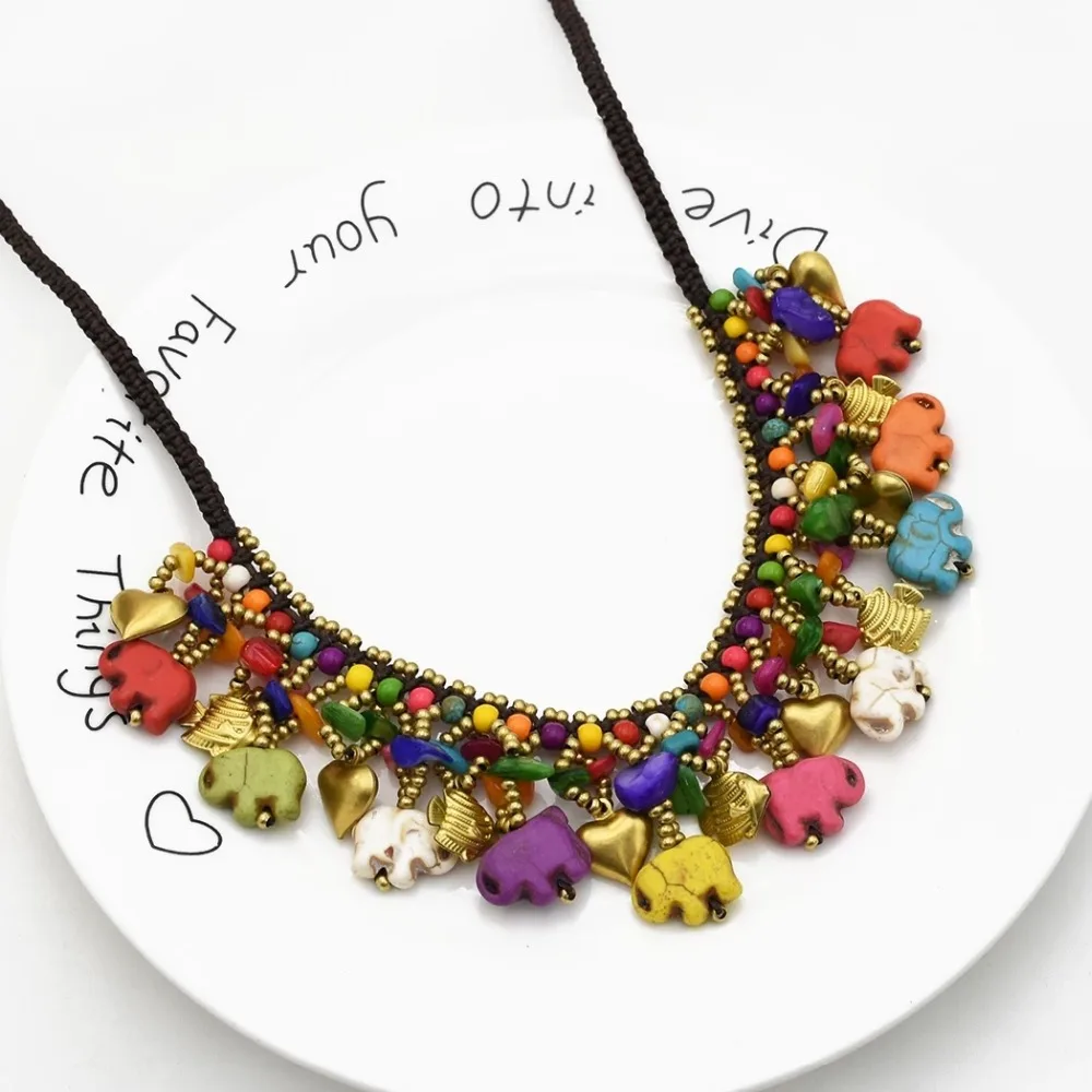 Baby Elephant Charms Nacklace Short Collar Colorful Irregular Beads Retro Natural Stone Beads Women Jewelry Gift Accessories
