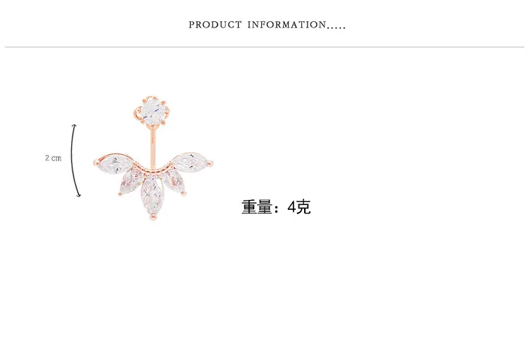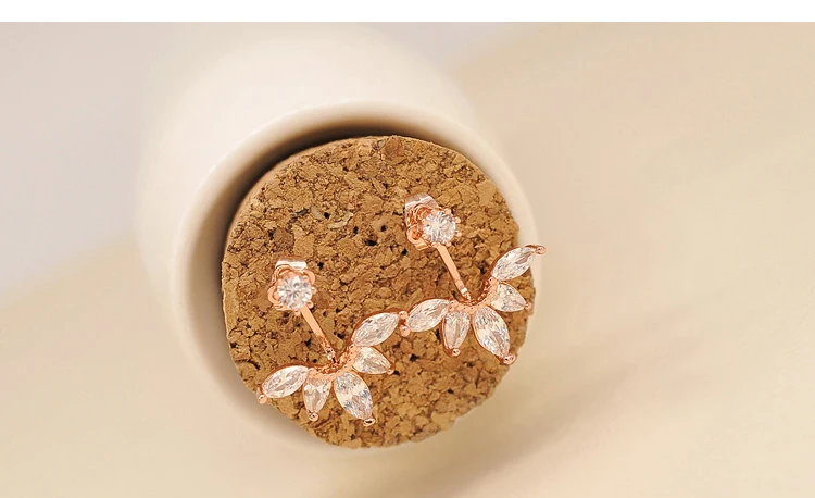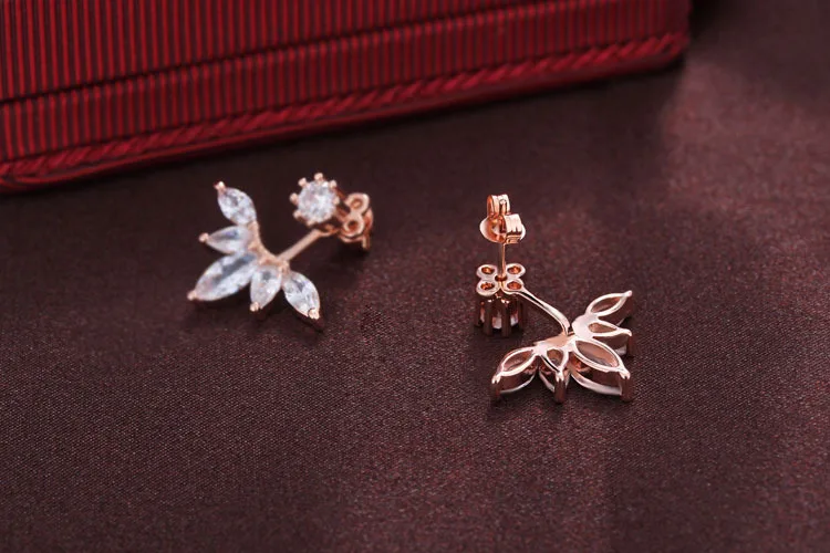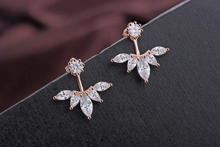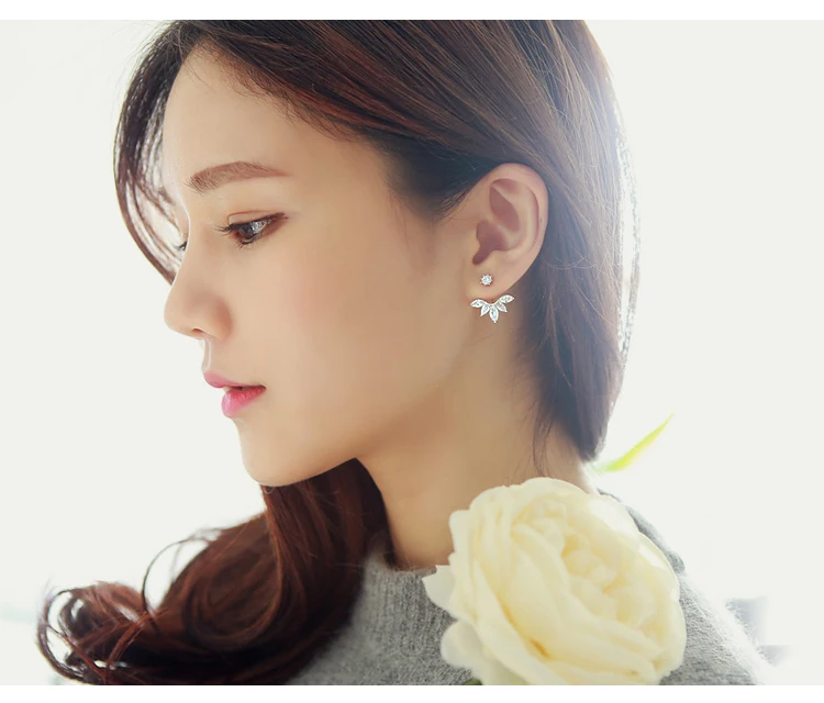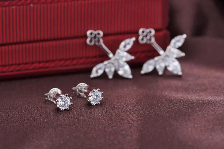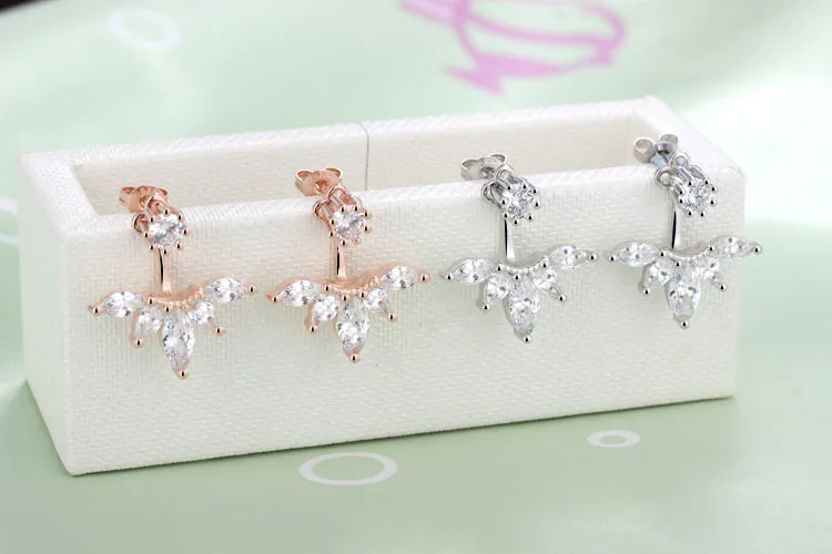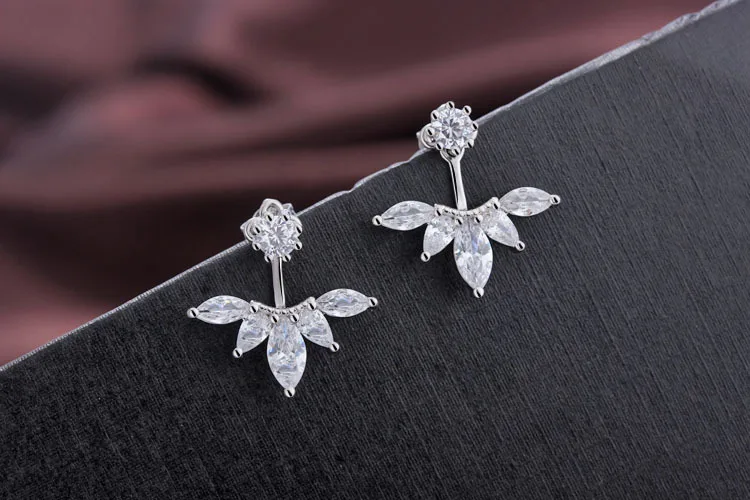 Back-Mounted Earrings Zircon Charm Ear Stud for Women Girl Jewelry Gift 925 Stamp Silver Color Female
