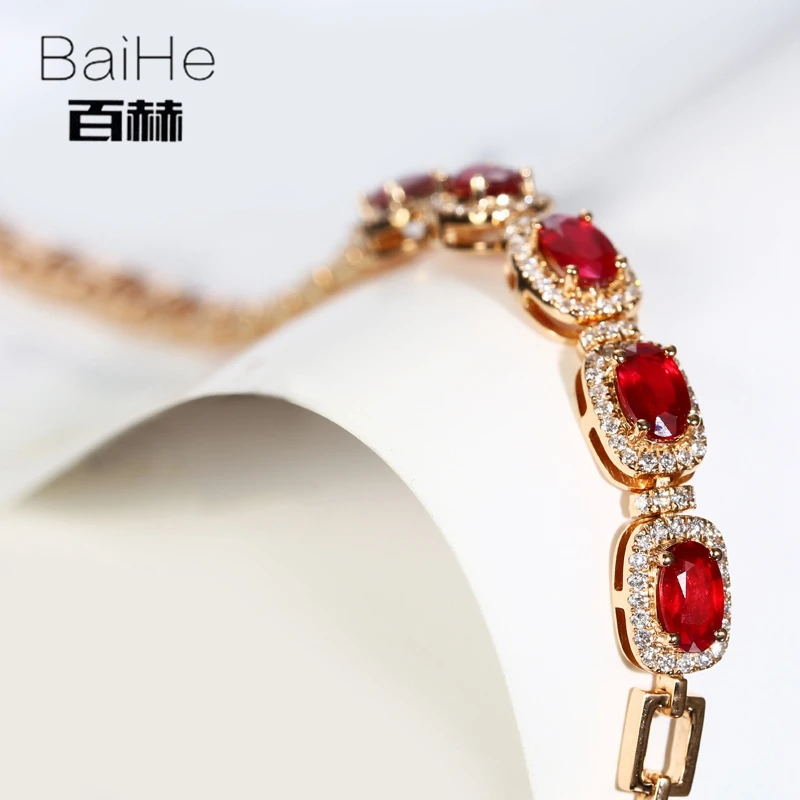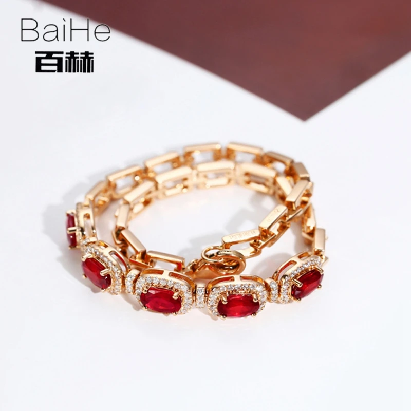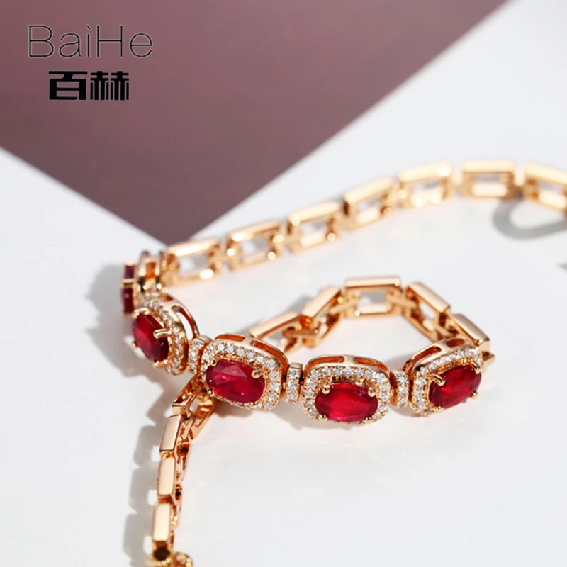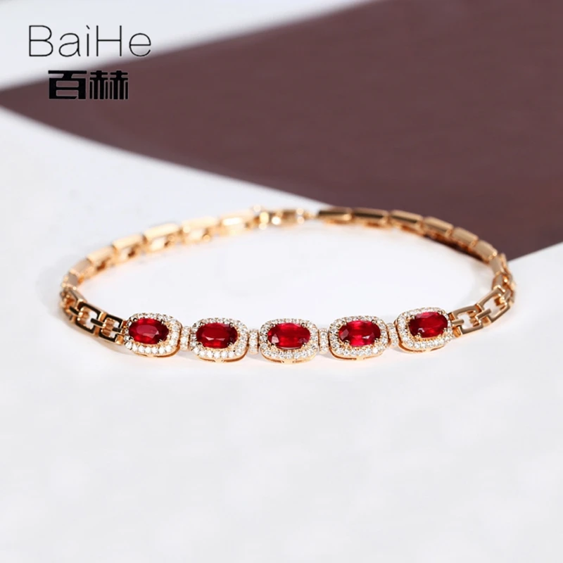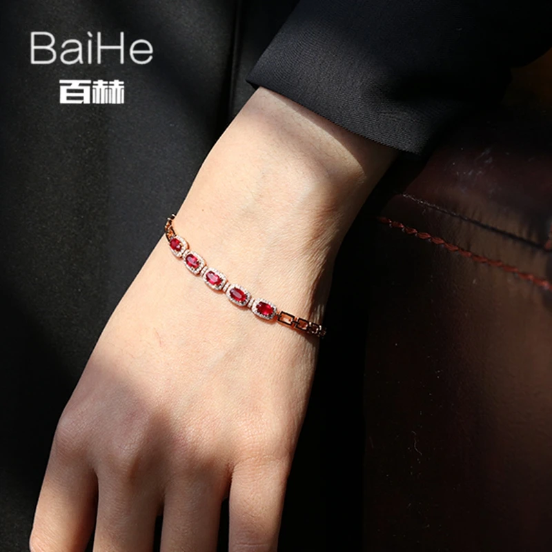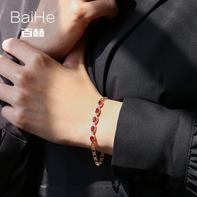 BAIHE Solid 14K Rose Gold 1.7ct Certified Oval cut 100% Genuine Natural Ruby Wedding Women Trendy Fine Jewelry unique Bracelet