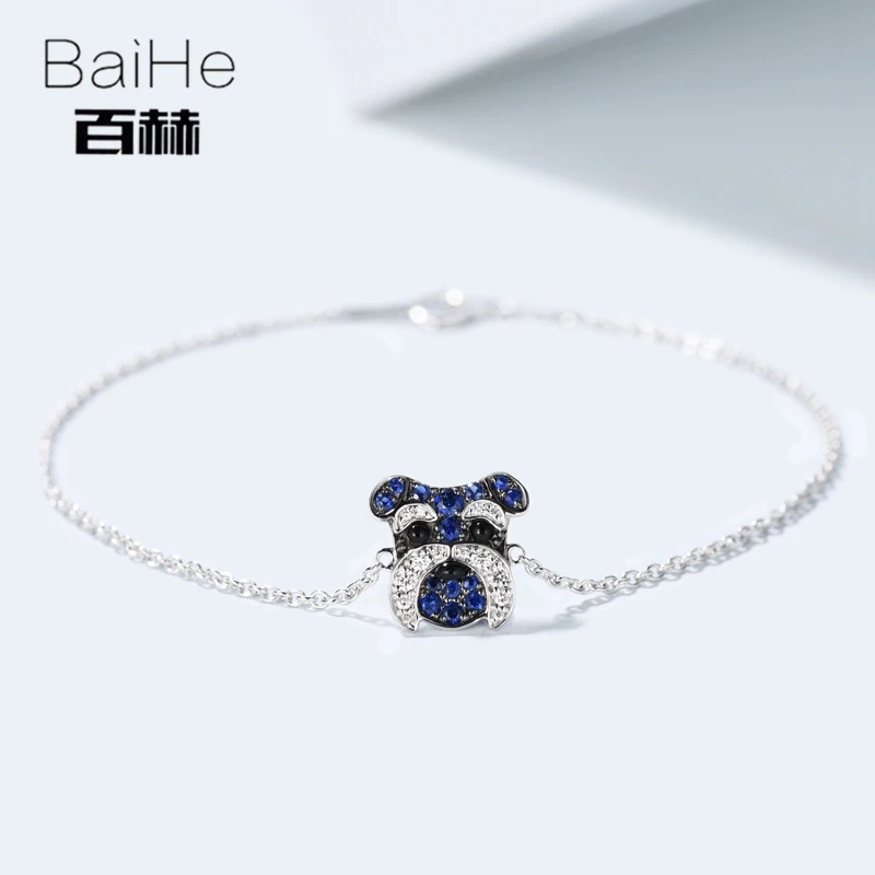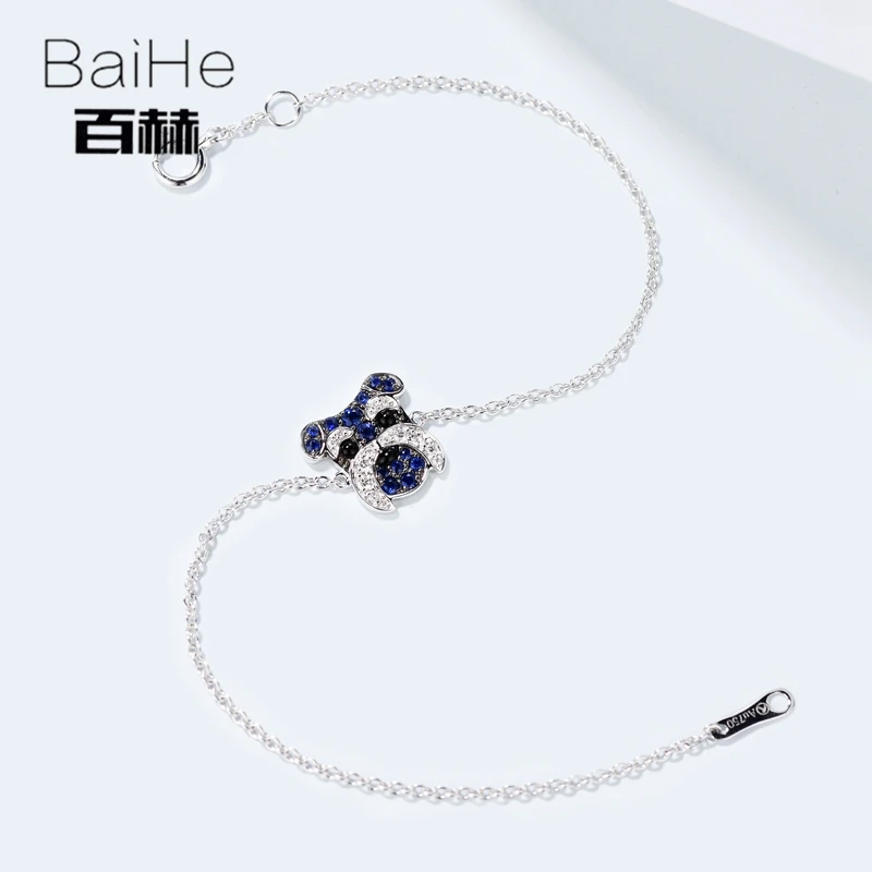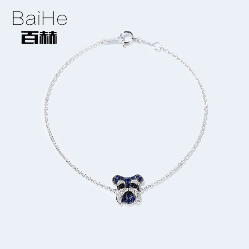 BAIHE Solid 14K White Gold 0.08ct Certified H/SI Genuine Natural Diamonds Anniversary Women Trendy Fine Jewelry unique Bracelet