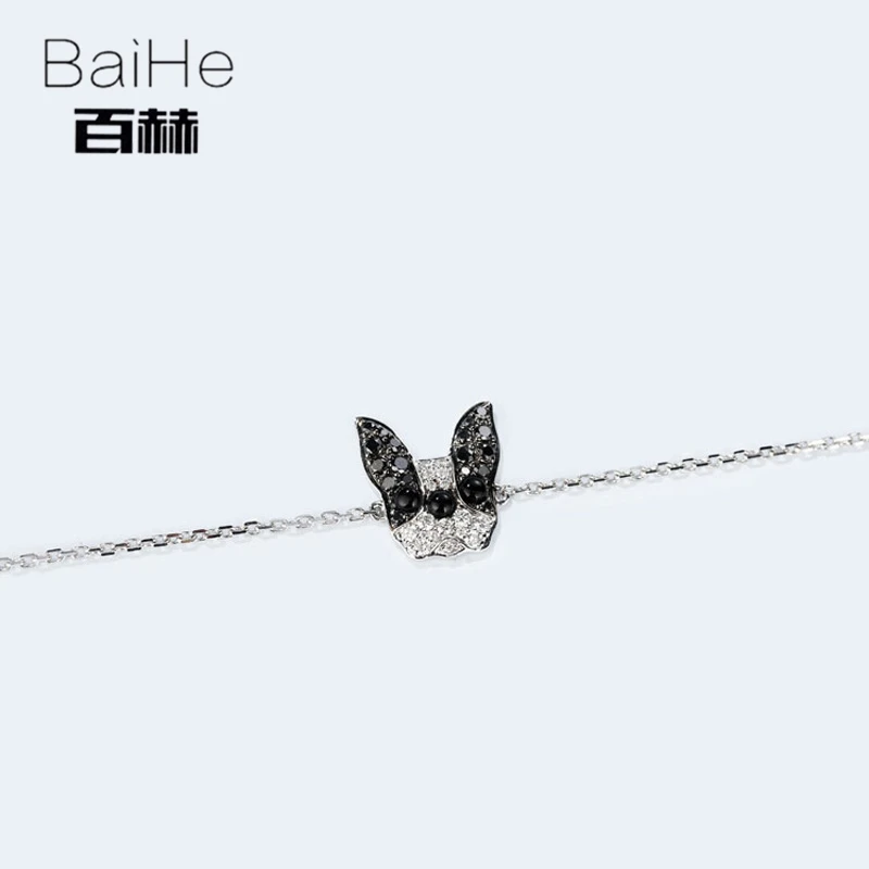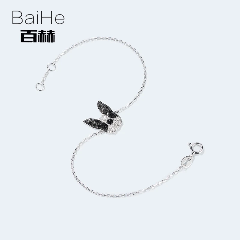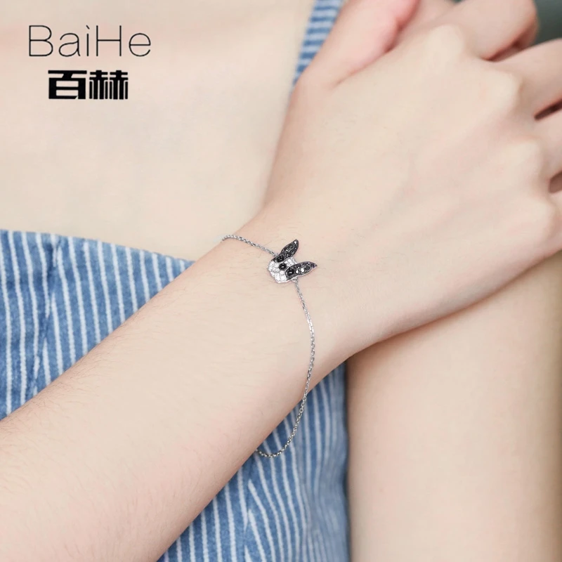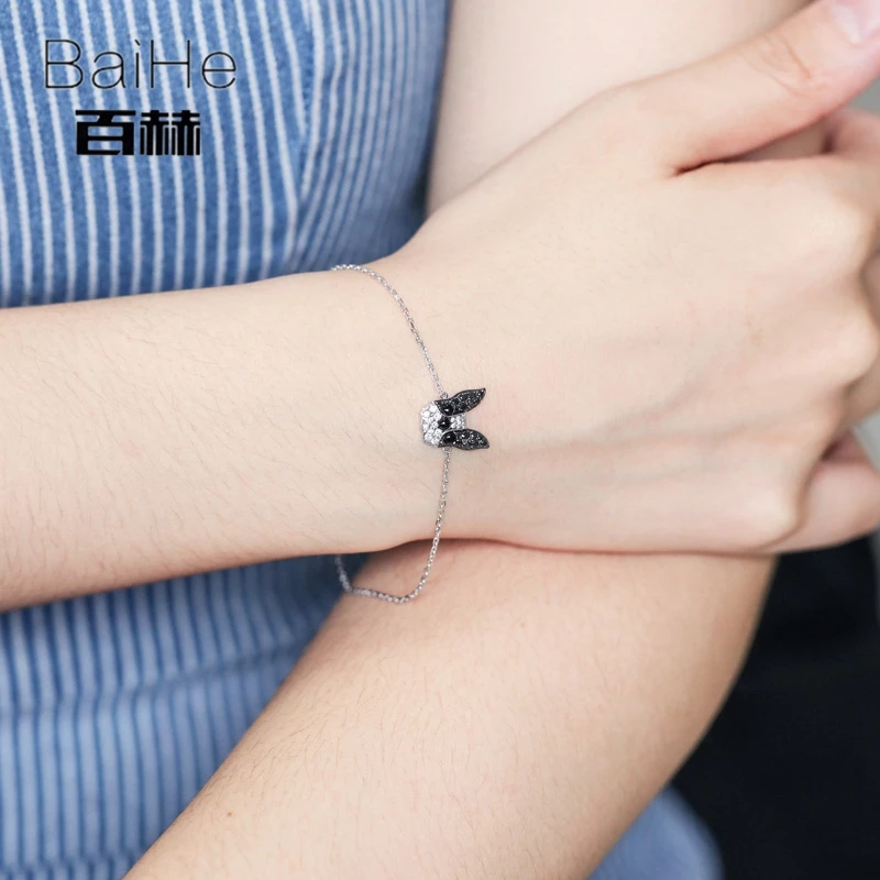 BAIHE Solid 14K White Gold 0.24ct Certified H/SI 100% Genuine Natural Diamonds & Black Diamond Trendy Fine Jewelry gift Bracelet