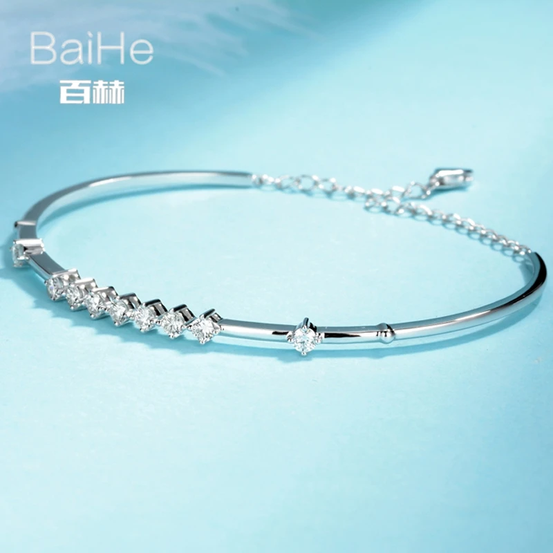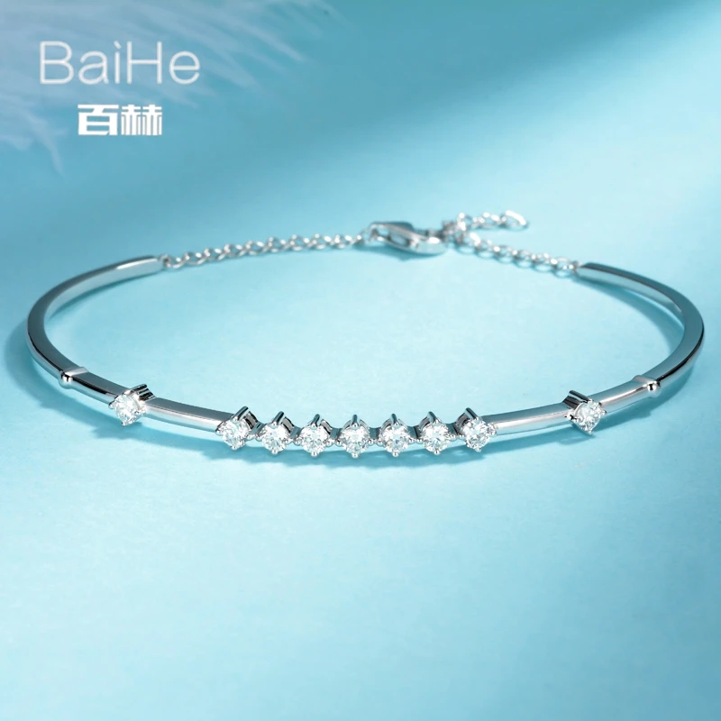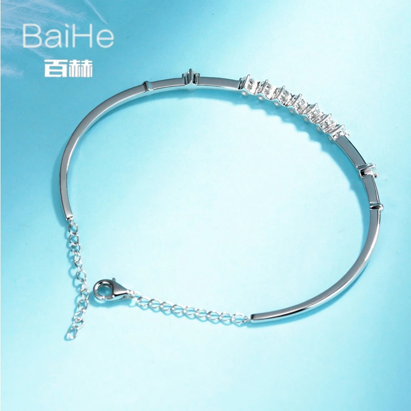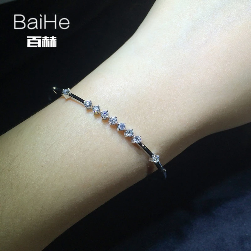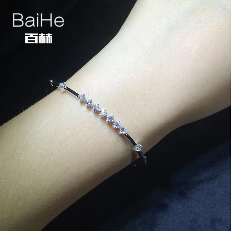 BAIHE Solid 14K White Gold 0.72CT Certified H/SI 100% Genuine Natural Diamonds Engagement Women Trendy Fine Jewelry Bracelet