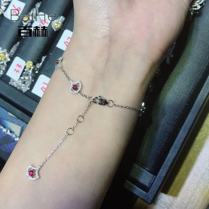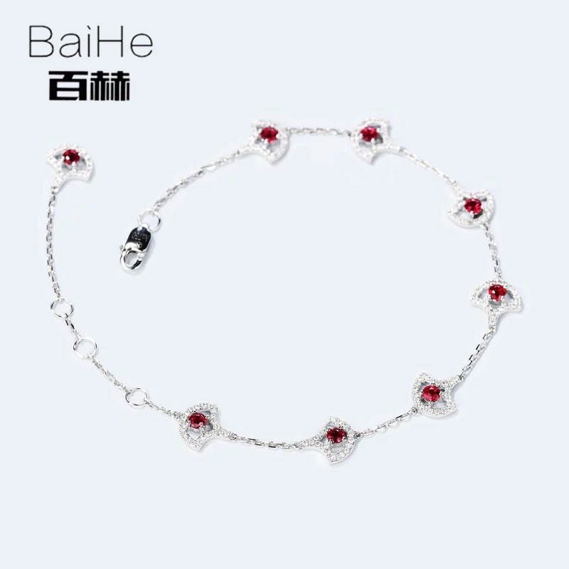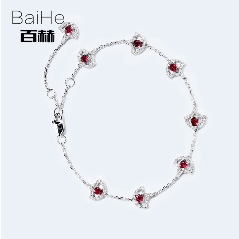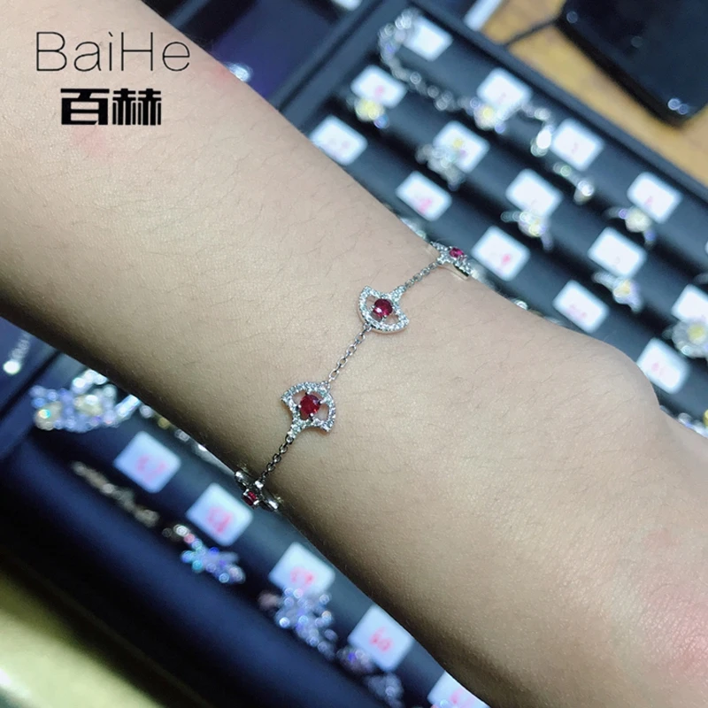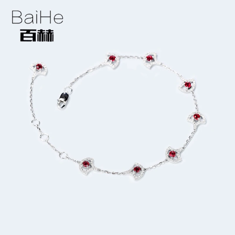 BAIHE Solid 14K White Gold 0.8CT Certified 100% Genuine Natural Ruby Anniversary Women Classic Fine Jewelry unique GIFT Bracelet