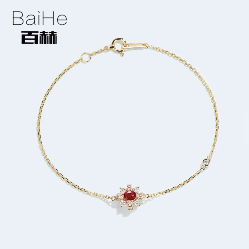 BAIHE Solid 14K Yellow Gold 0.2ct Certified H/SI 100% Genuine Natural Diamonds Engagement Women Trendy Fine Jewelry Bracelet
