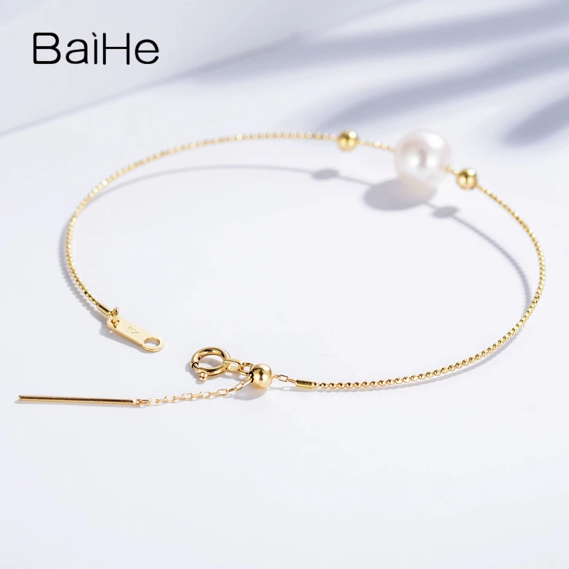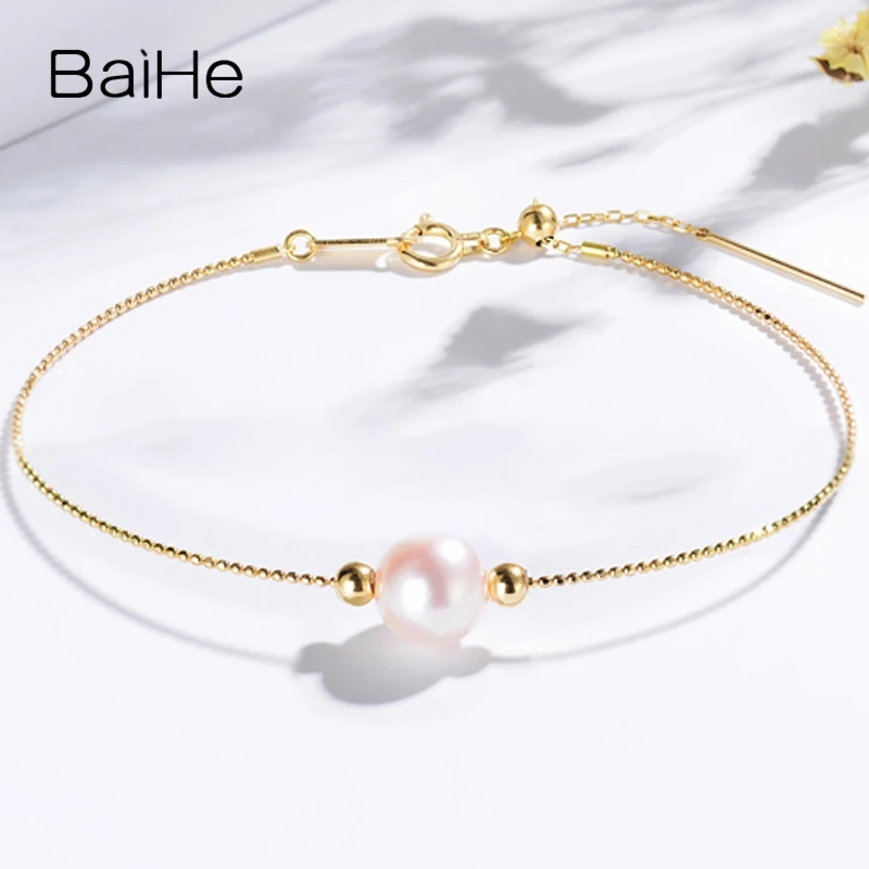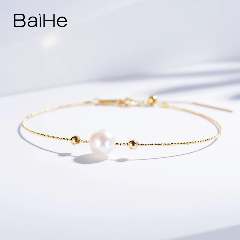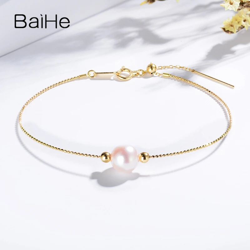 BAIHE Solid 14K Yellow Gold 7mm Certified 100% pearls Anniversary Women Trendy Fine Jewelry Elegant unique Bracelet