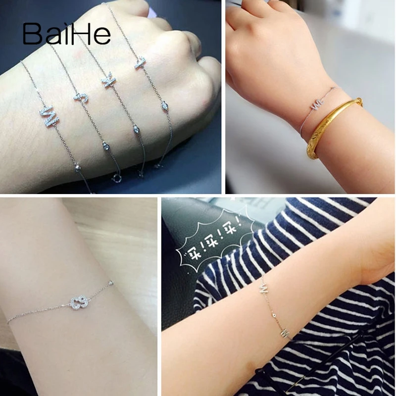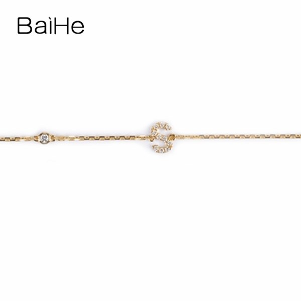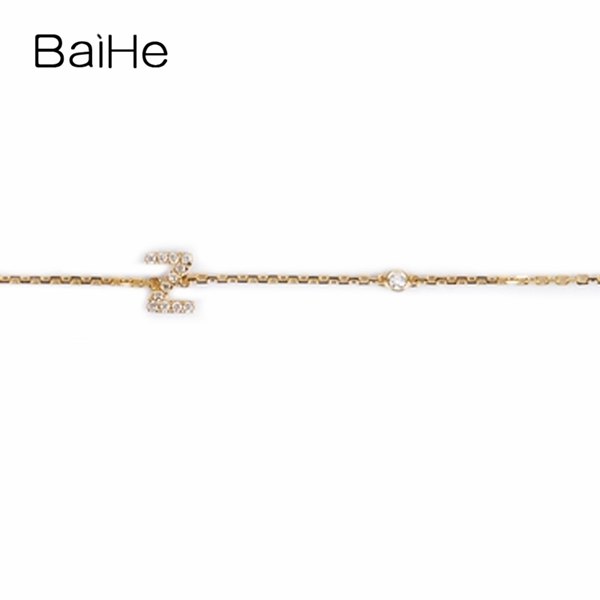 BAIHE Solid 18K Yellow Gold(AU750) Round Full CUT Genuine Natural Diamonds Engagement Gift Trendy Fine Jewelry Fashion Bracelet