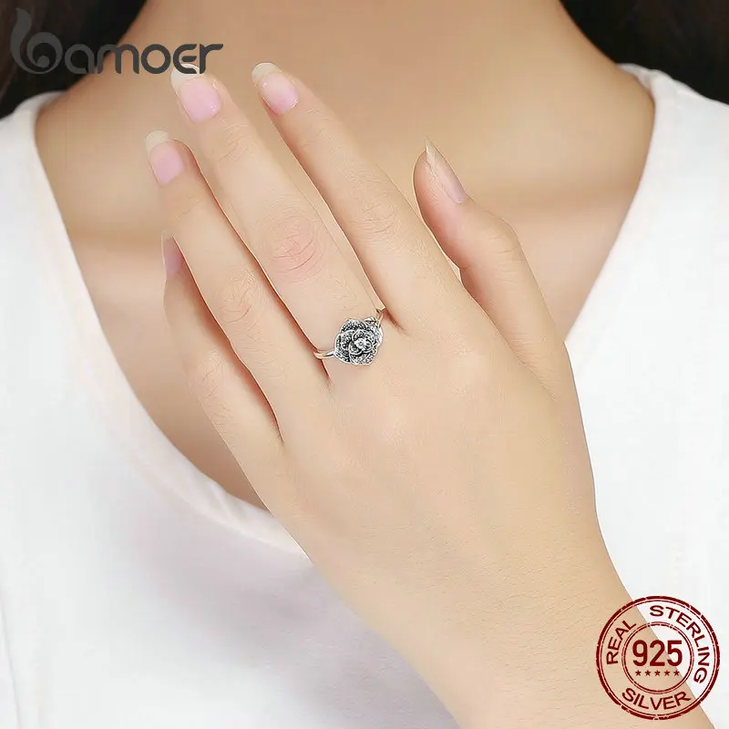 100% 925 Sterling Silver Rose Flower Dazzling CZ Tree Leaf Finger Rings for Women Wedding Engagement Jewelry Gift SCR382