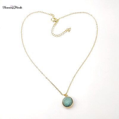 Banny Pink Chic Round Stone Bead Pendant Choker Necklace For Women Bohemia Geometric Dangle Choker Collar Simple Clavicle Chain