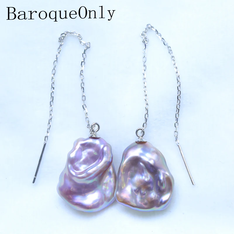10-20mm dangle drop earrings purple/mixed-color baroque pearl fashion earrings 925 silver best gifts for girlfriends