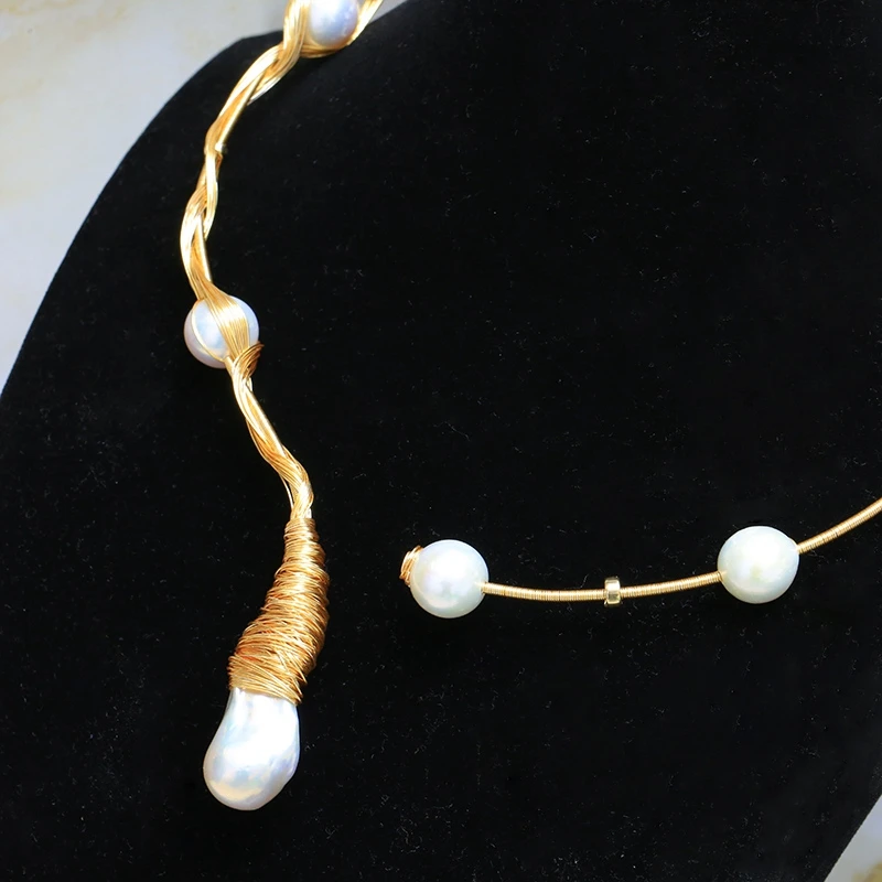 Handmade Multiple Pearls Choker Necklace 1 Big Pearl 7 Round Pearls Vintage Pearl Necklace