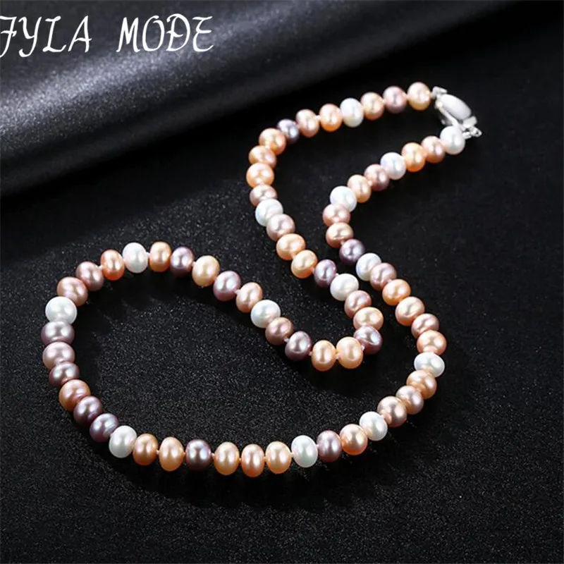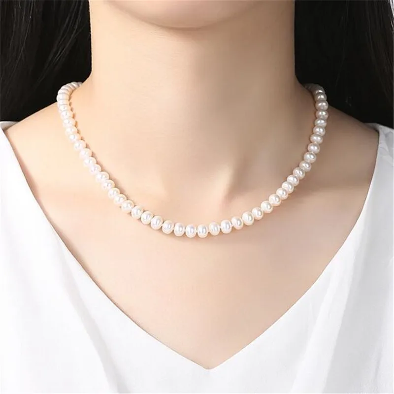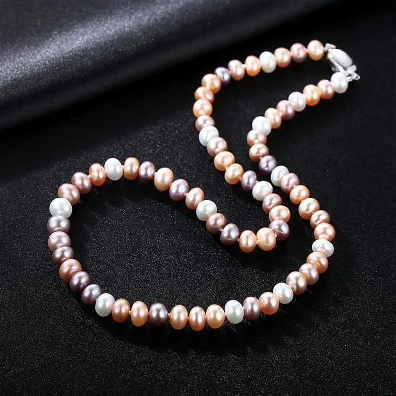 Beaded Choker Necklaces 2020 Fashion Wedding Jewelry 7-8mm Round Pearl White Pink Purple Torques For Women Gifts