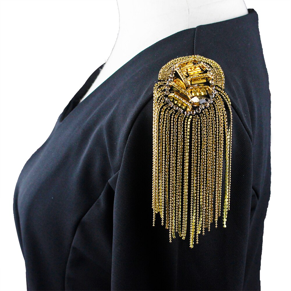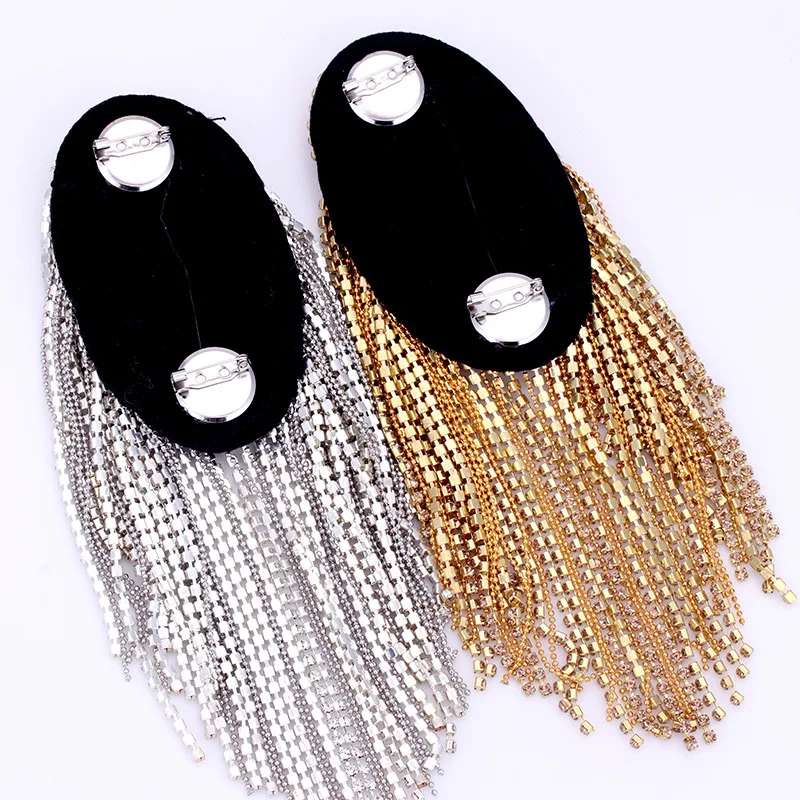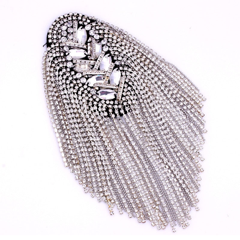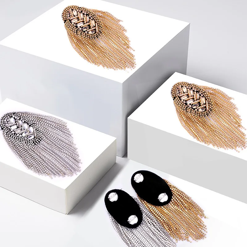 Beaded Crystal Shoulder Patches Motifs Fringe Tassel Epaulets Shoulder Brooches 2 Pieces