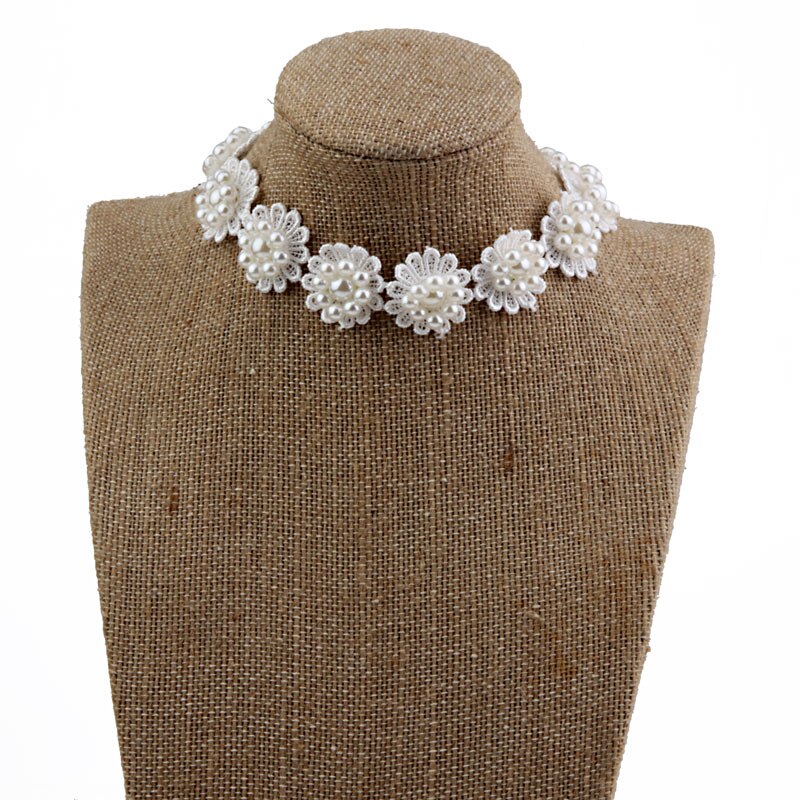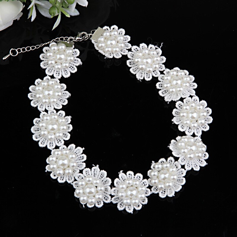 Beadsland Chokers Necklaces Simulated-pearl Handiwork Flower Shape Design Ethnic Woman Girl Party Festival Gift 40157