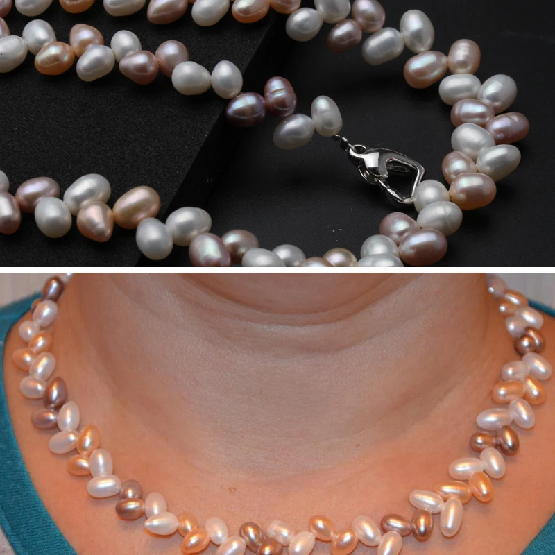 Beautiful boho pearl jewelry set,anniversary gift multi color natural pearl necklace bracelet set women