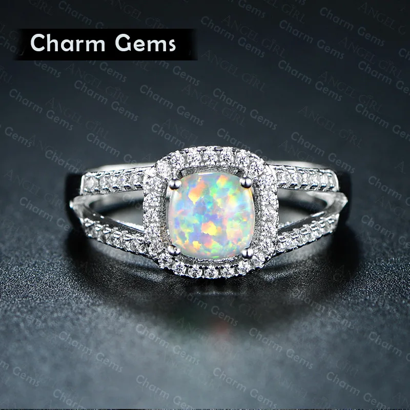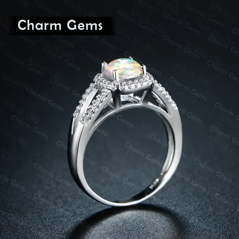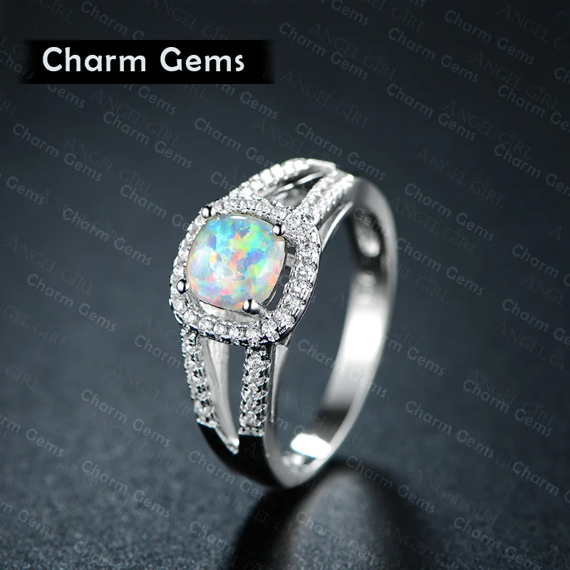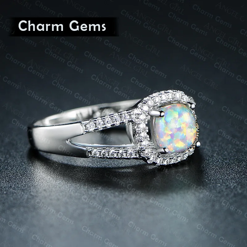 Beautiful Cute Simple Round Jewelry White Fire Opal cz Champagne Crystal from Austrian Ring For Women Wholesale