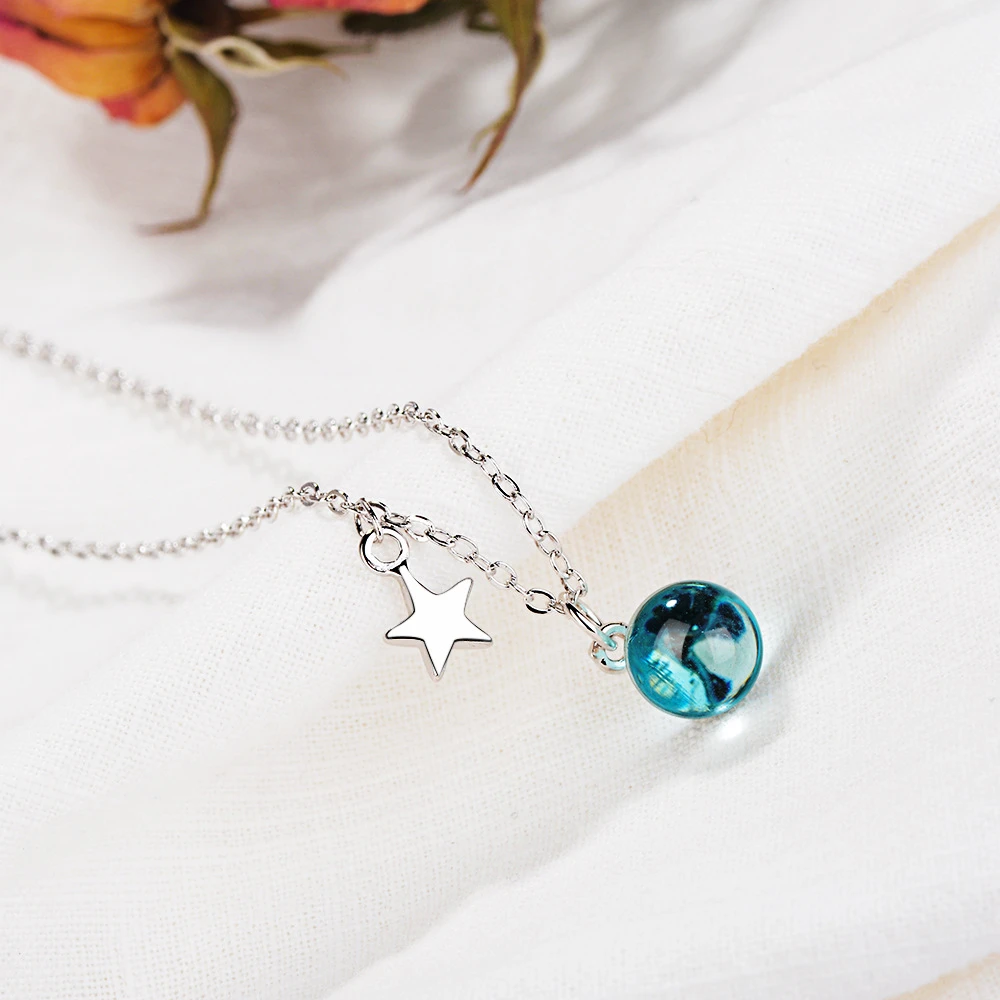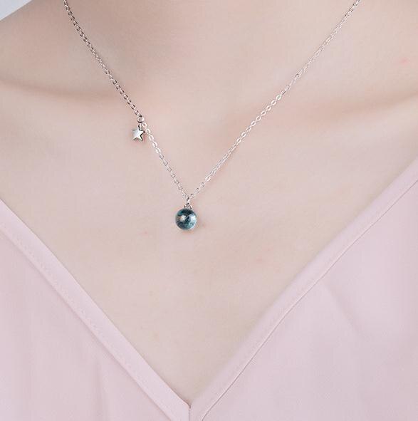 Beautiful Female Exquisite 925 Sterling Silver Jewelry Star And Blue Ball Crystal Clavicle Chain Pendant Necklaces for Women
