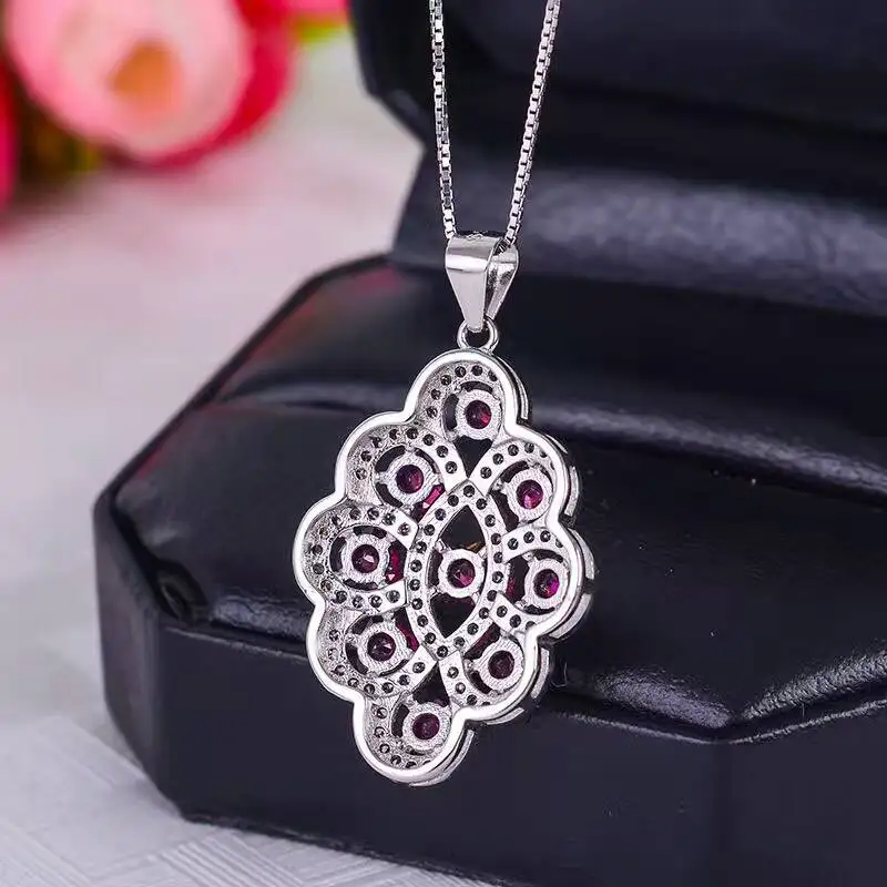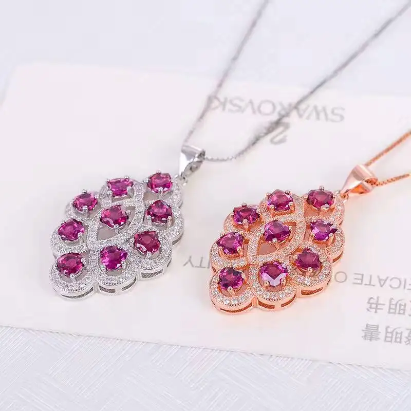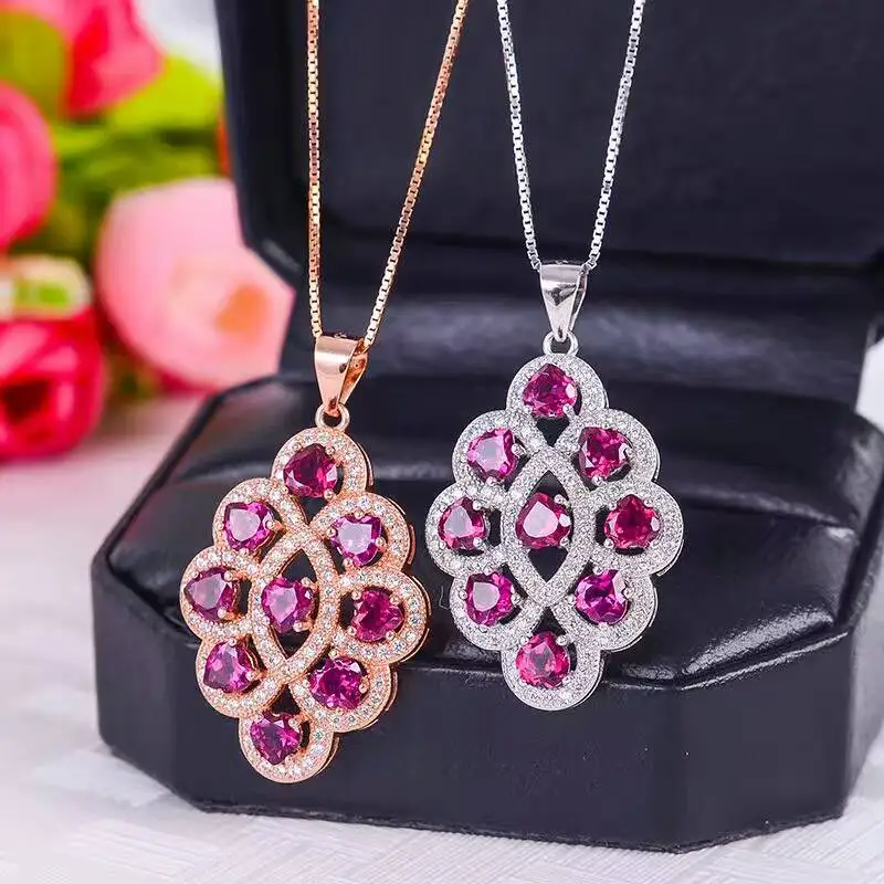 Beautiful heart cut gemstone pendant 9pcs 4mm*4mm natural pyrope garnet silver necklace pendant solid 925 silver garnet pendant