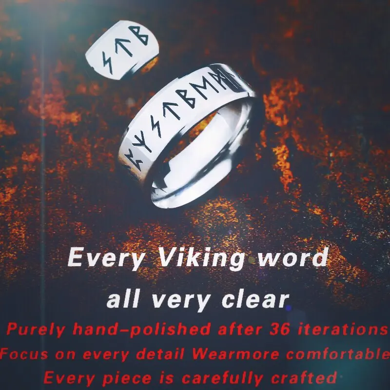 316L Stainless steel Fashion Style MEN and women Retro Odin Jewelry Viking Female Amulet Vintage Norse Rune words Rings