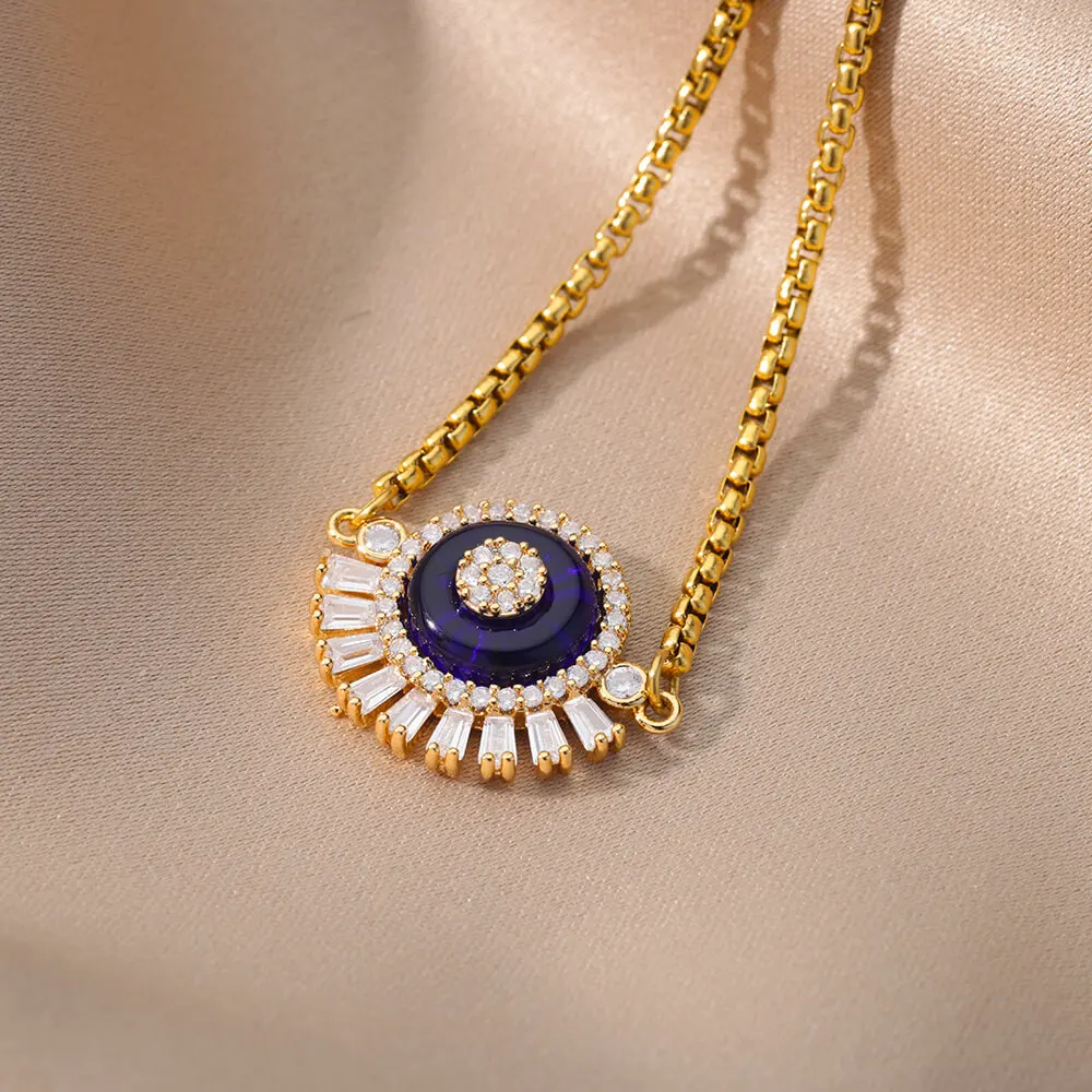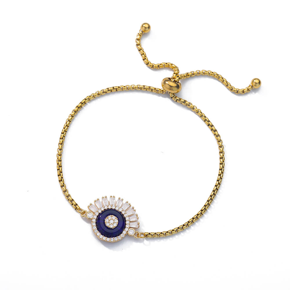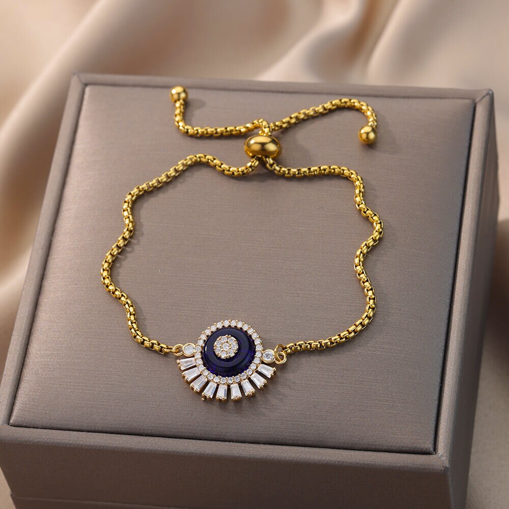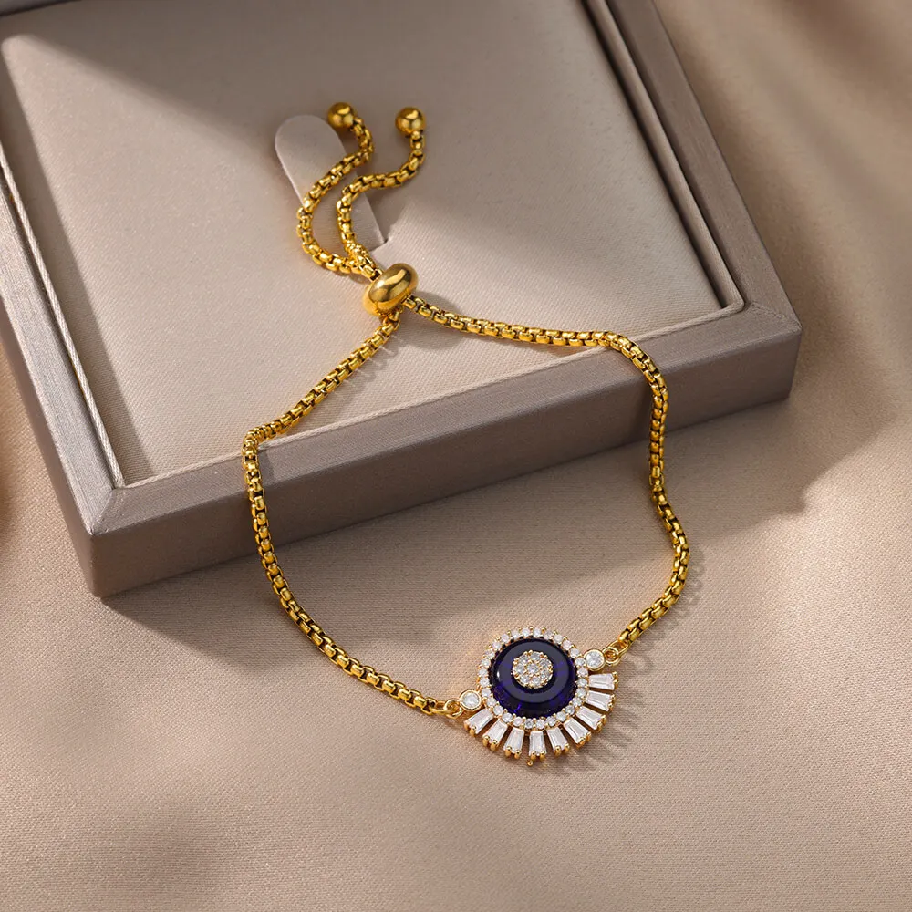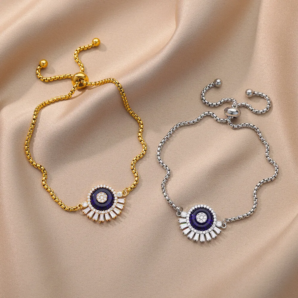 Beruntung Biru Bulat Zirkon Gelang untuk Wanita Rantai Manik Baja Nirkarat Gelang Bangle Mewah Pasangan Pernikahan Perhiasan Pullover