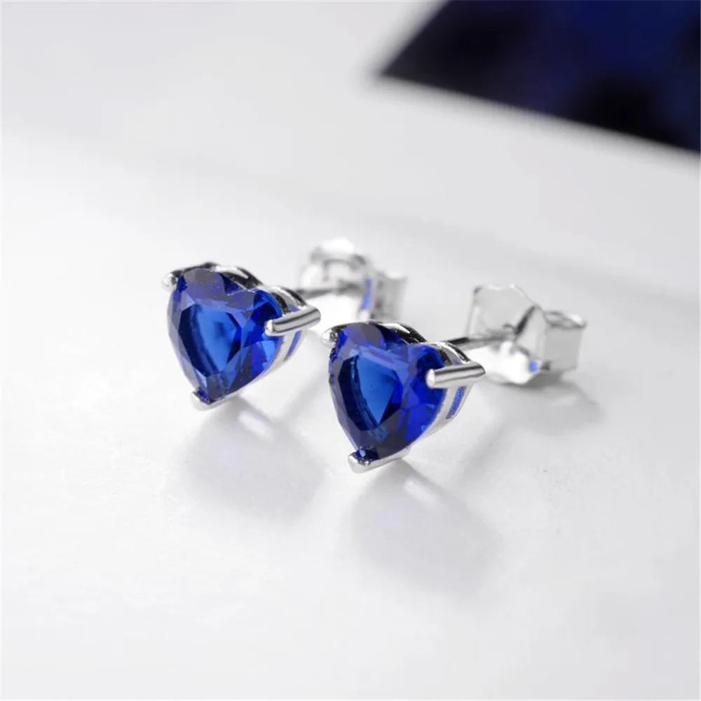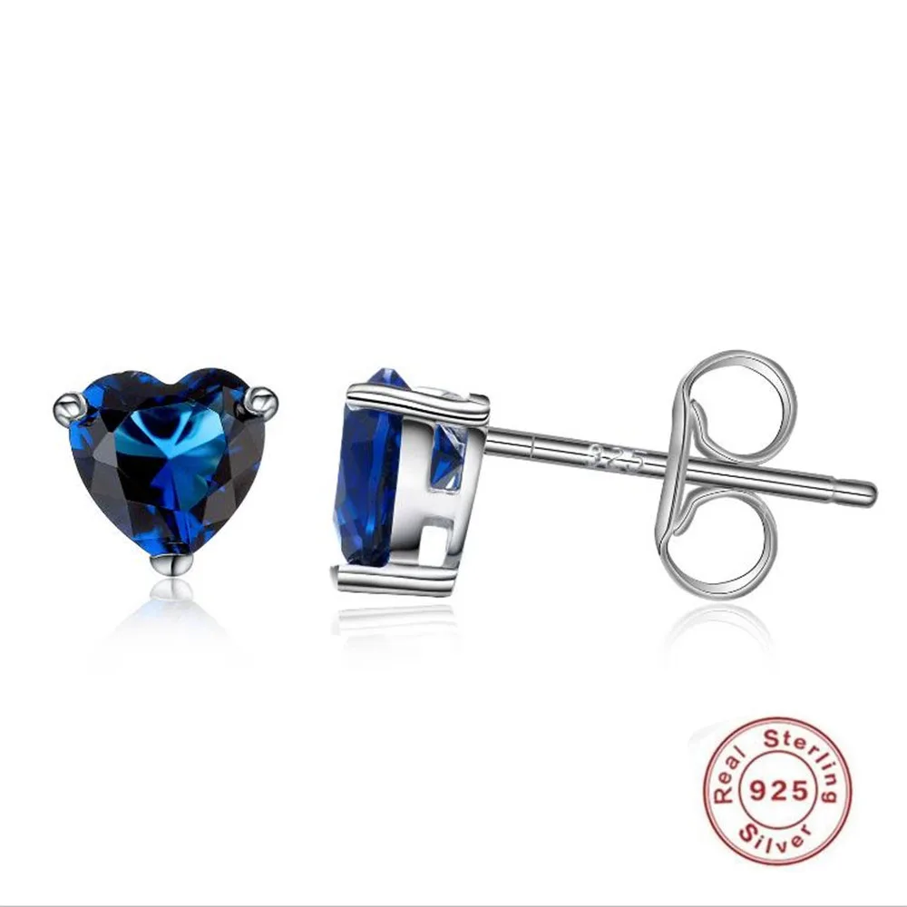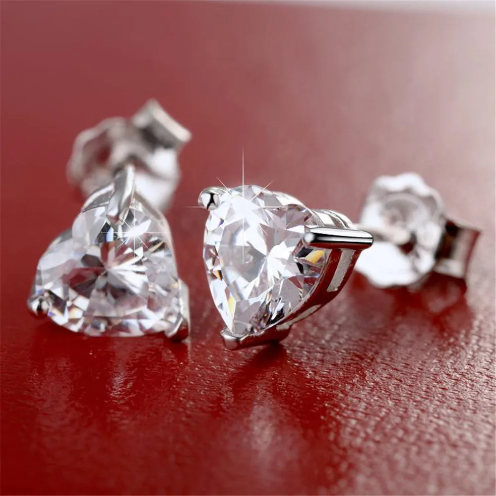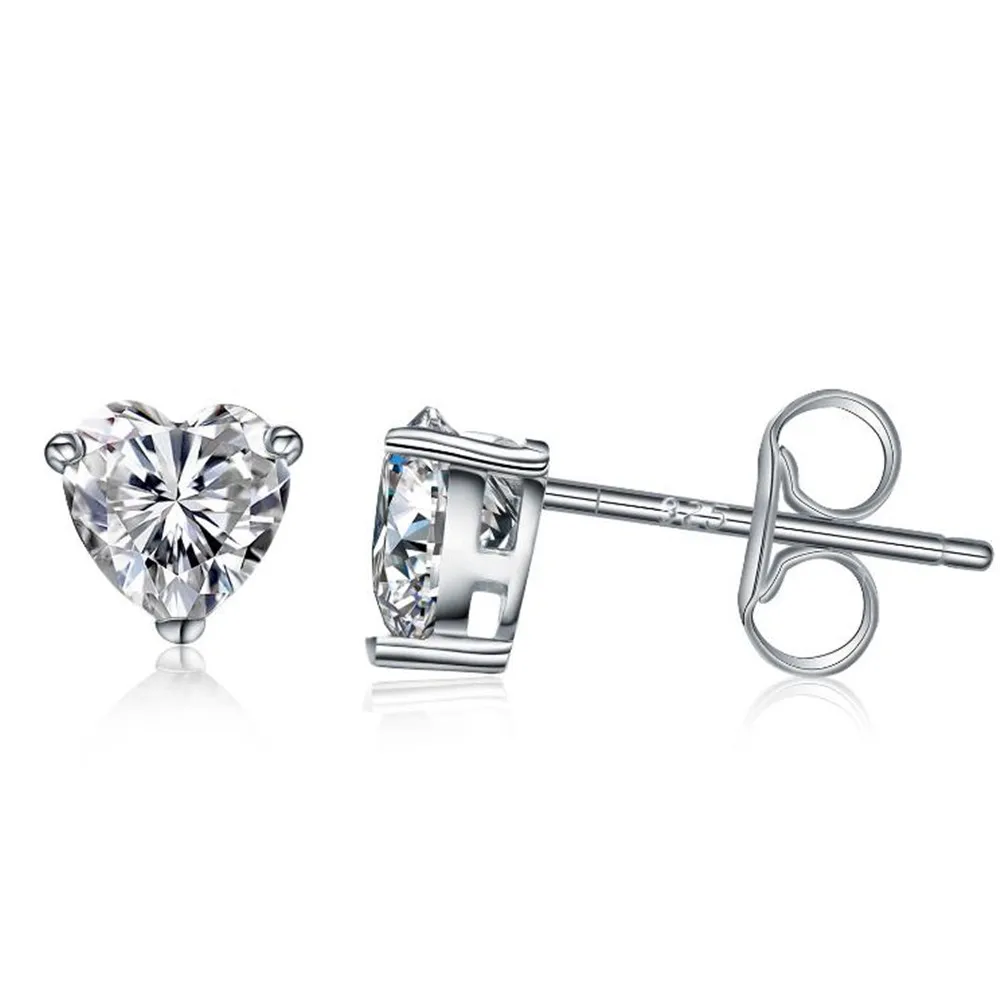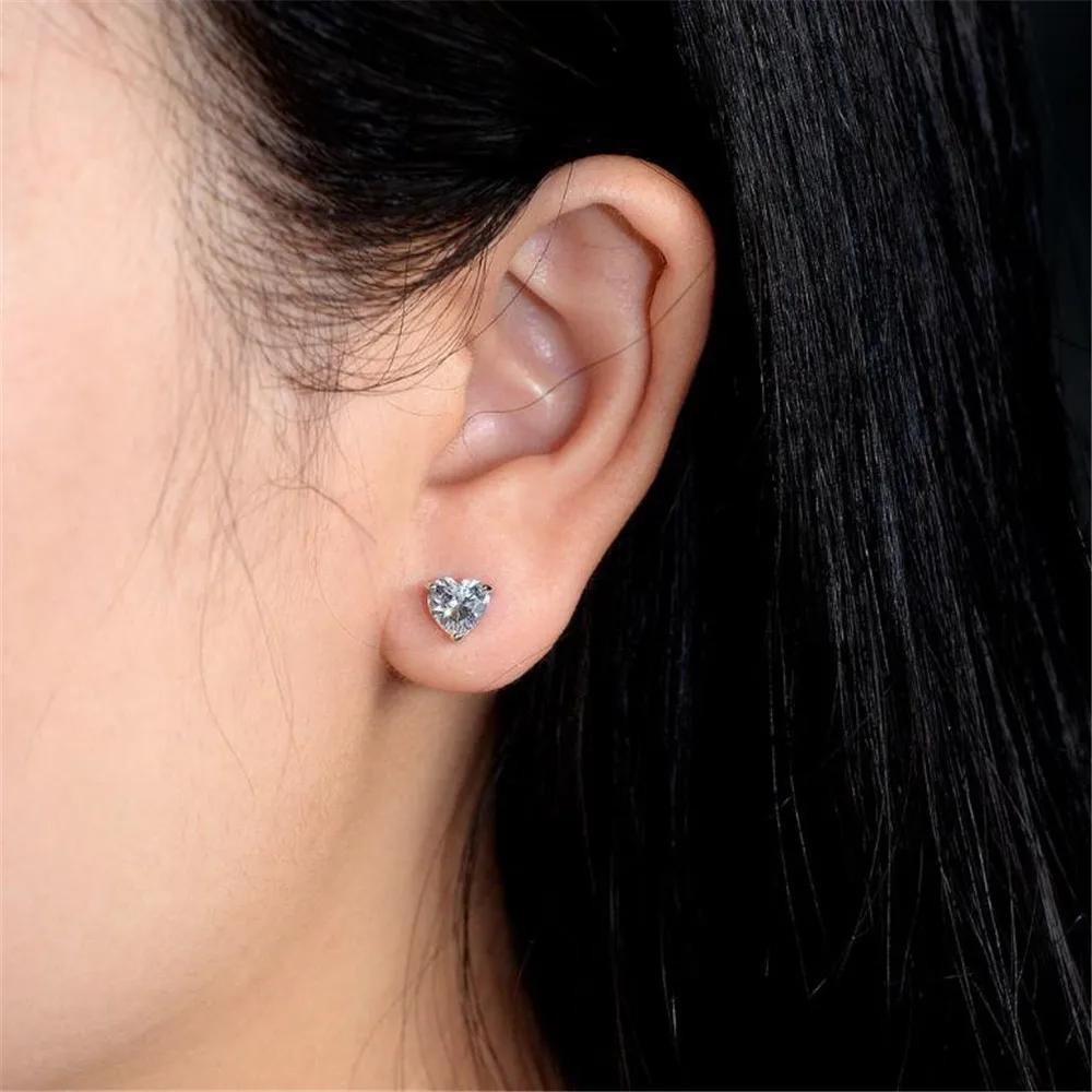 Women's S925 Strling Silver Earring Studs Exquisite Sea Heart Small Heart Shaped Inlaid Zircon Studs Jewelry