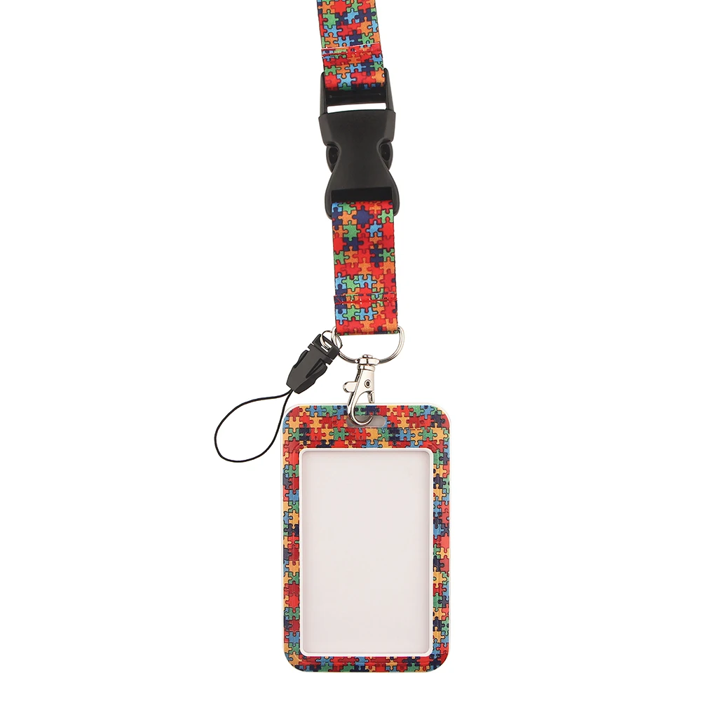 BG674 Autism Awareness Lanyards with ID Holder Name Tag Badge Holder with Neck Lanyard Bank Credit Card Badge Holder Accessories