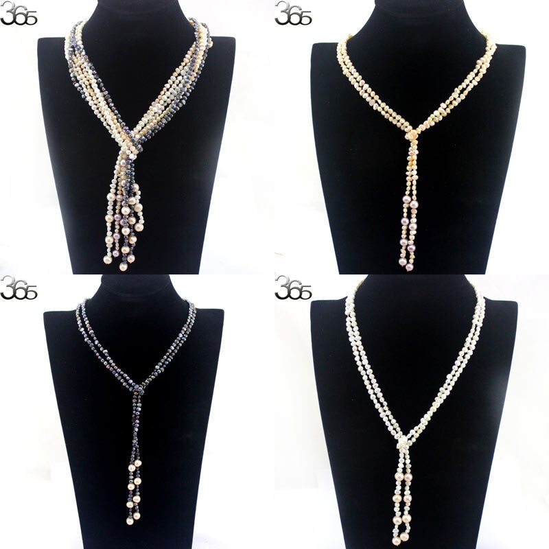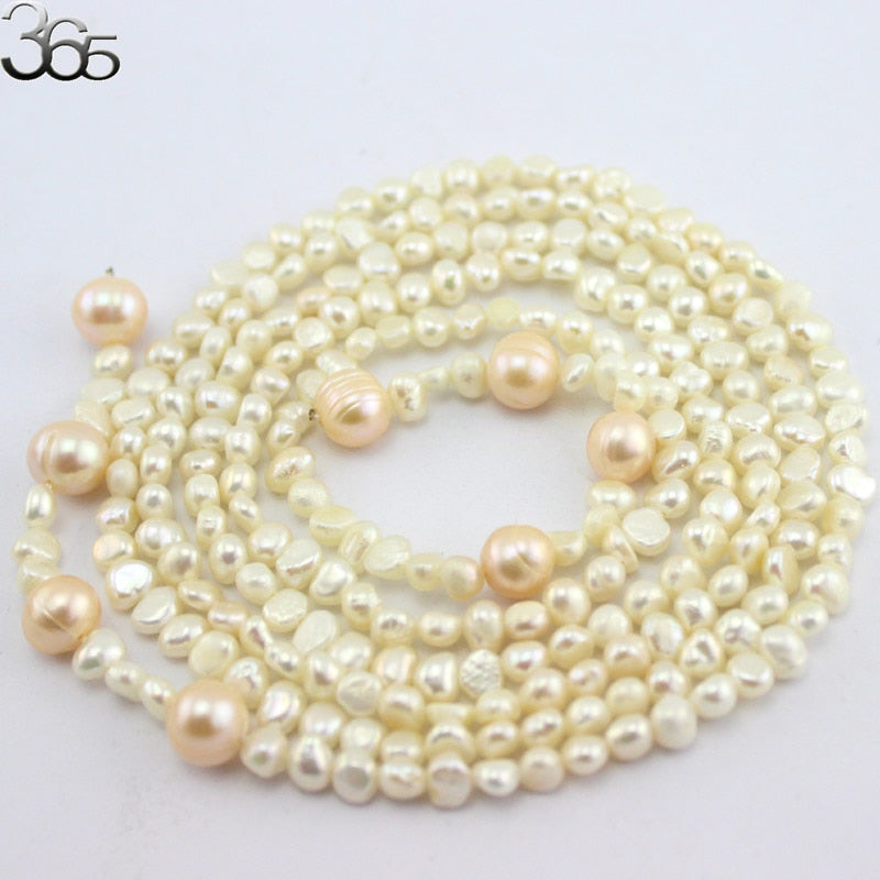 BGSJ 4-5mm Freeform& 9-10mm Round Freshwater Pearl Knot Jewelry Long Necklace Strand 50"