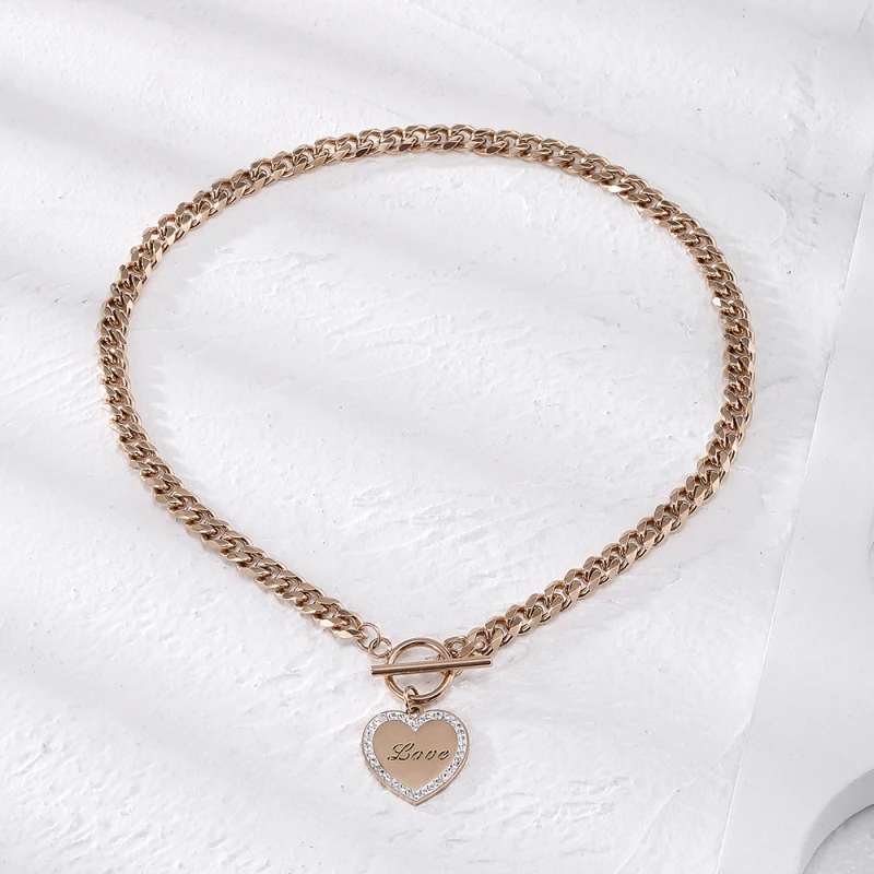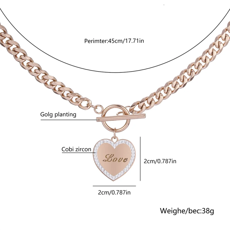 Product points: : Crystal Love Heart Pendent Stainless Steel Necklace