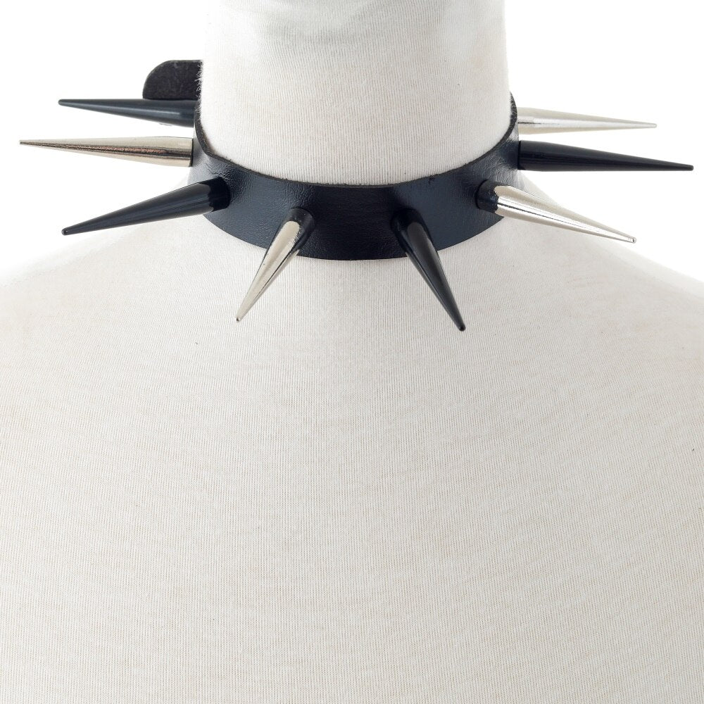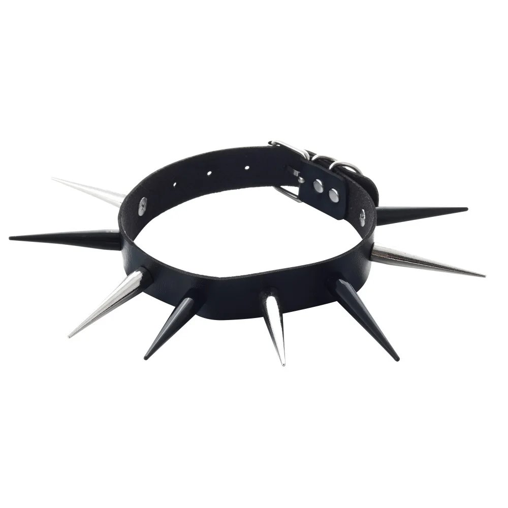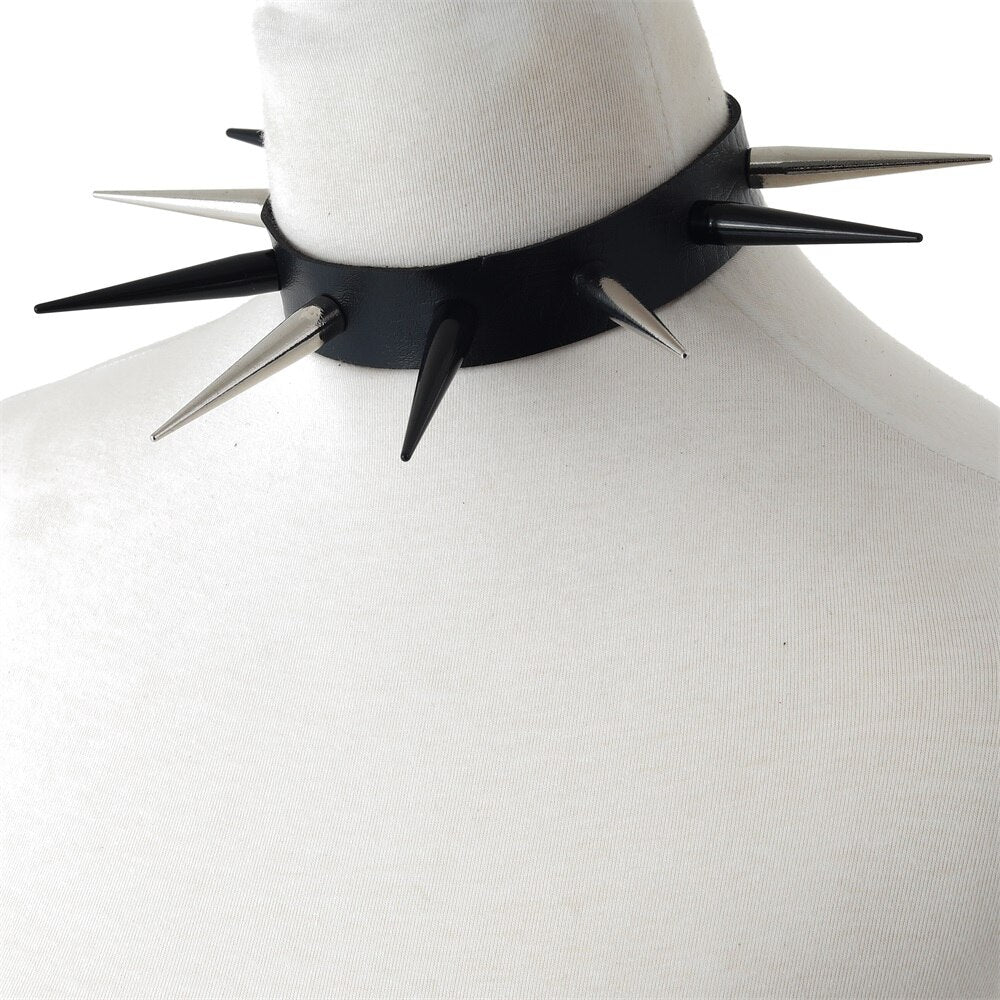 Big Spiked Choker Punk Faux Leather Collar For Women Men Cool Studded Chocker Goth Style Necklace Gothic Accessories