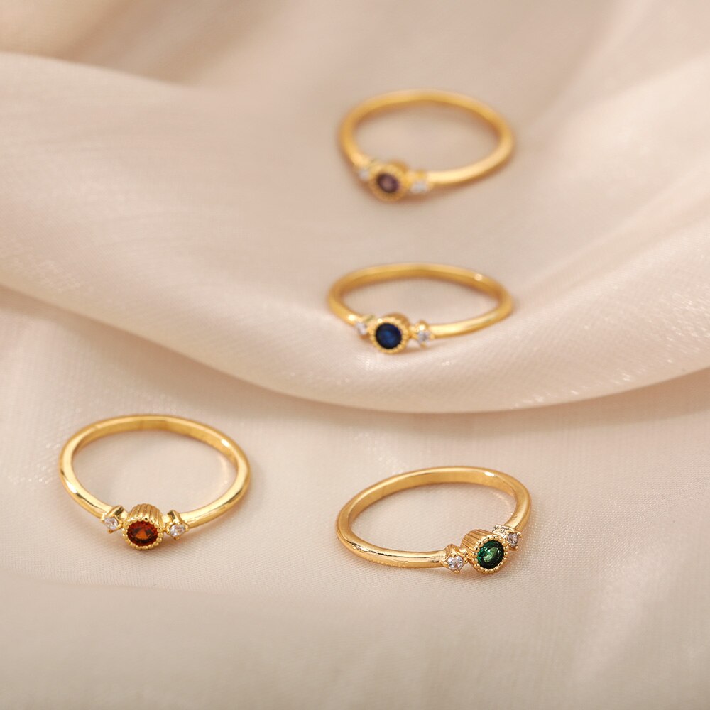 Birthstone Rings For Women Stainless Steel Female Cubic Zirconia Ring 2023 Trend Aesthetic Jewelry Gifts anillos mujer