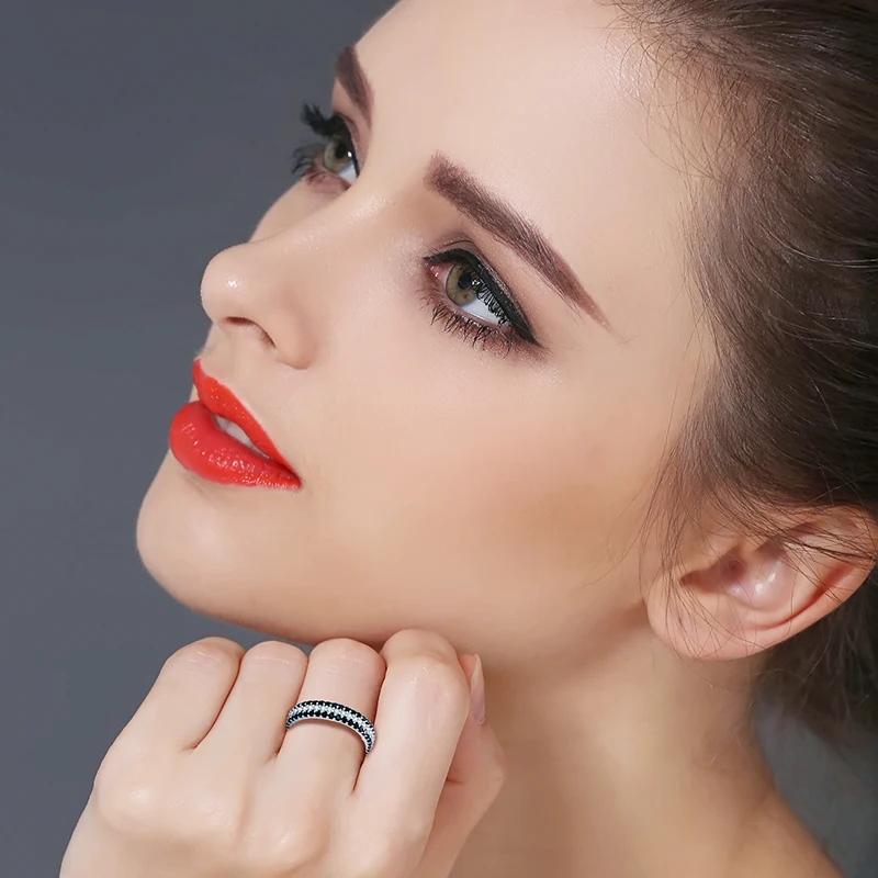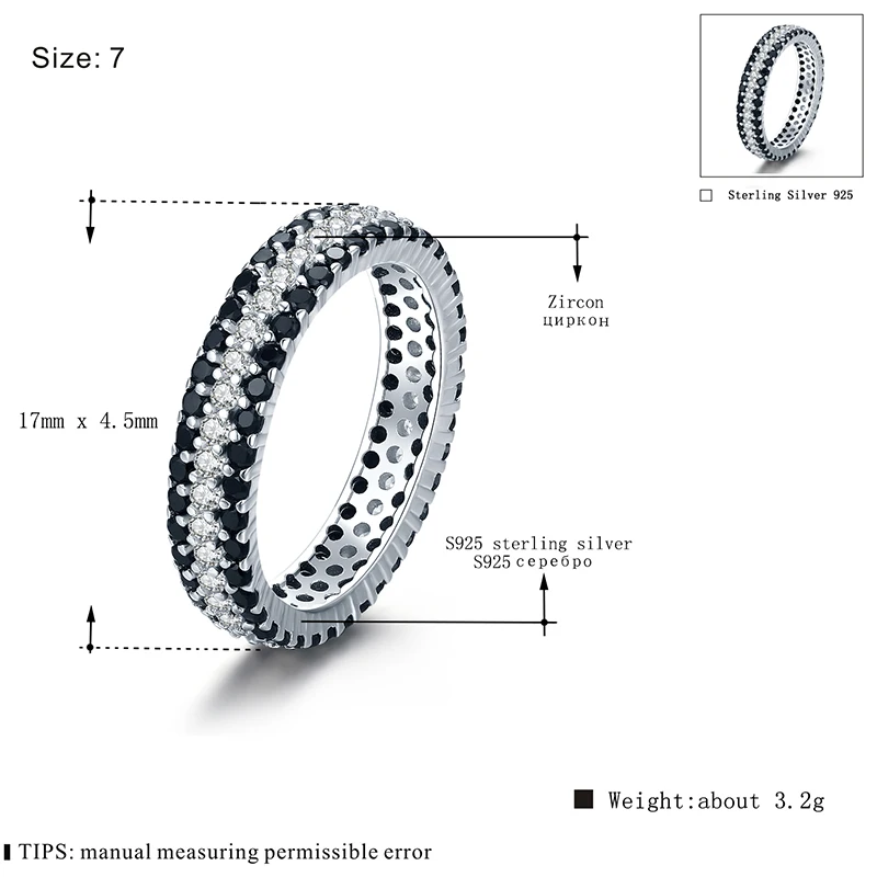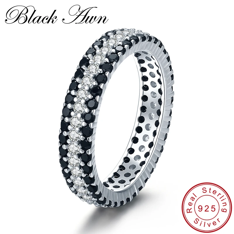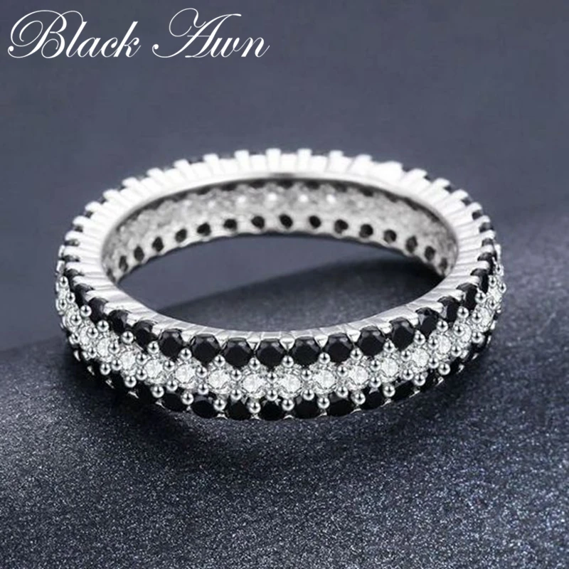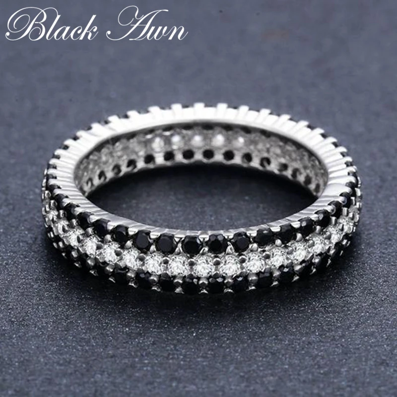 [BLACK AWN] Vintage Real 100% 925 Sterling Silver Ring Black Spinel Round Rings Sterling Silver Jewelry C443