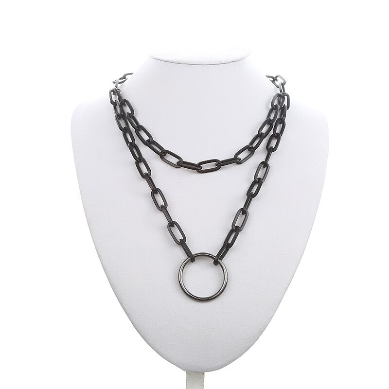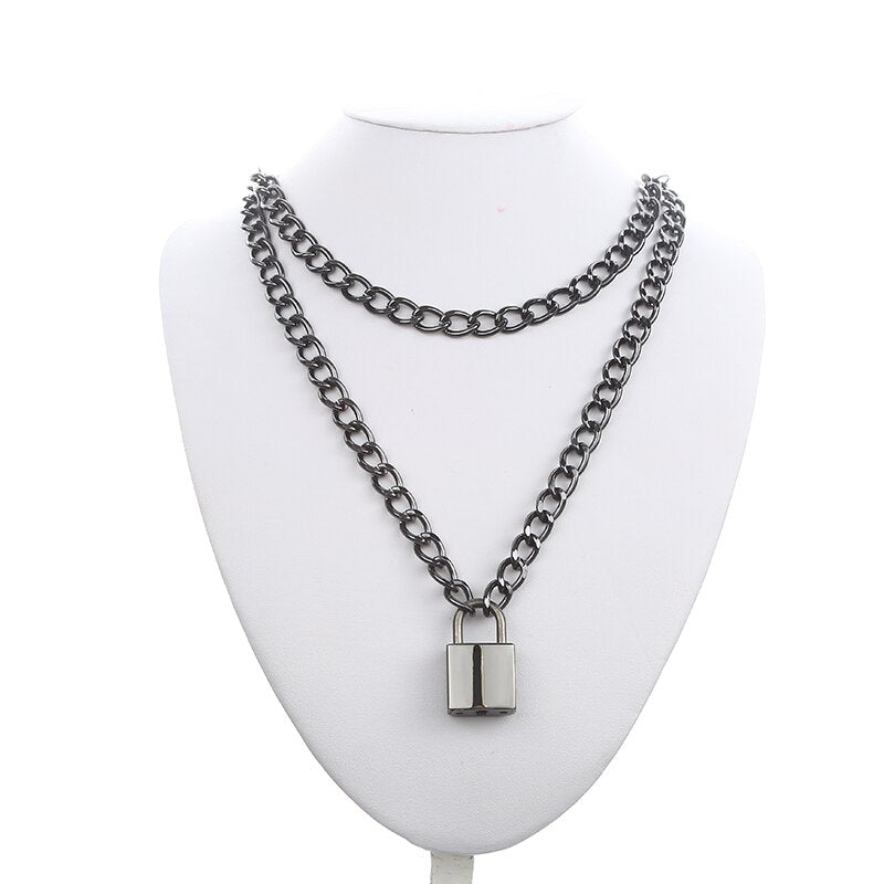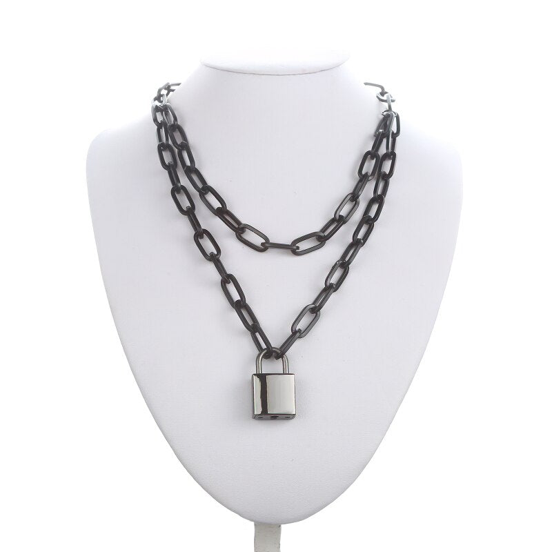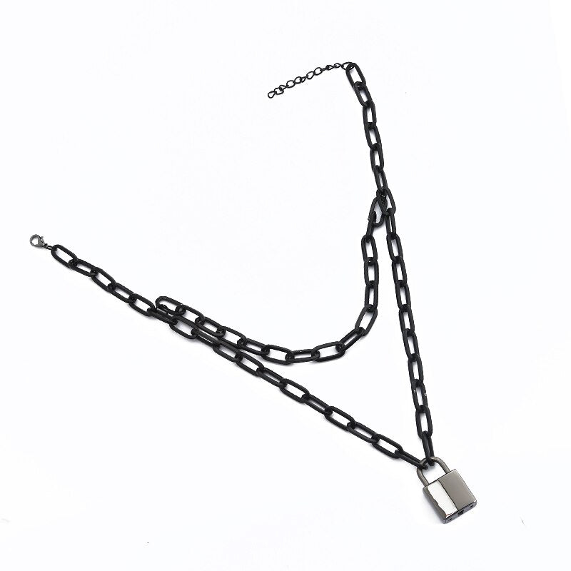 Black chain necklace square lock necklace women men metal padlock chains hip hop goth jewelry accessories gifts
