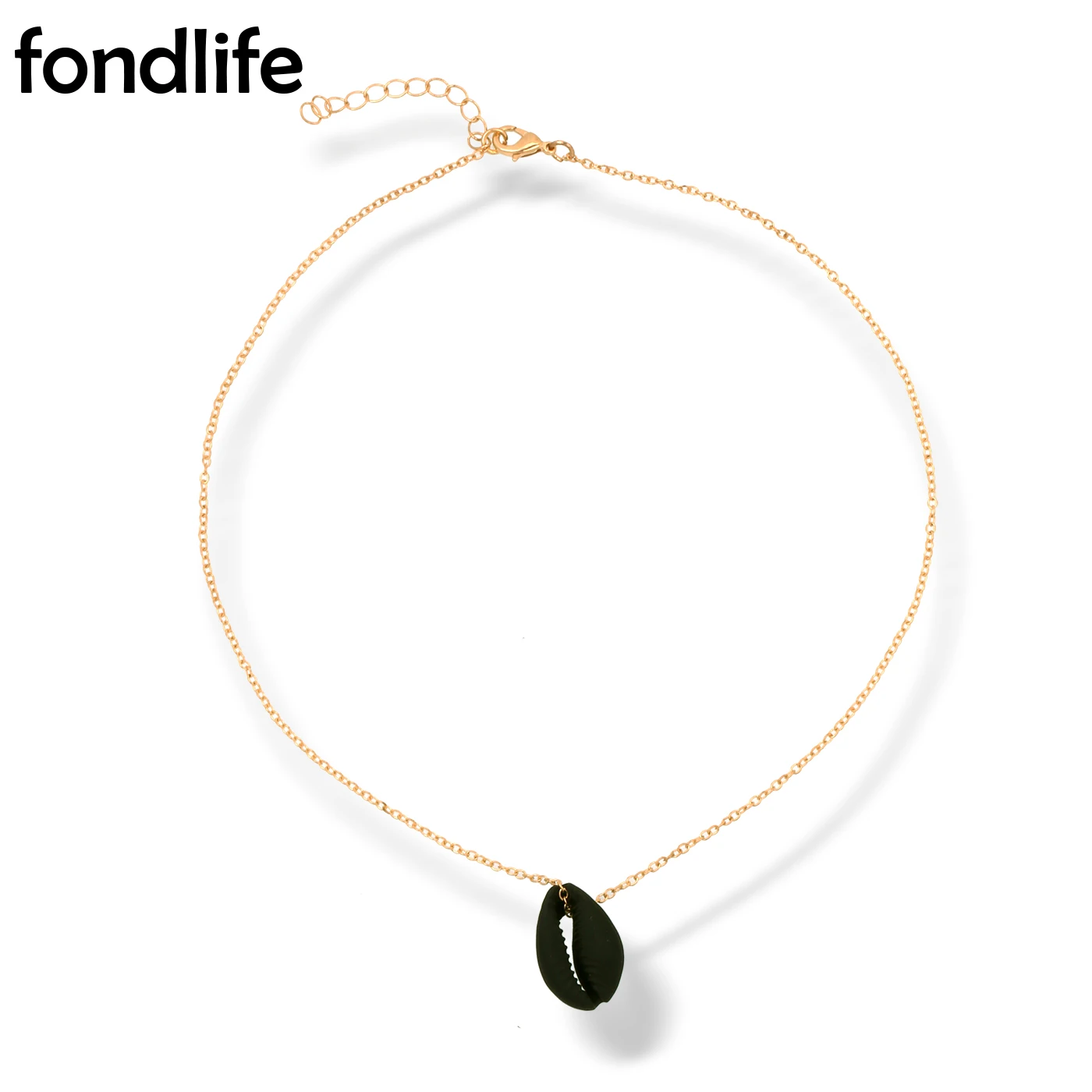Black Cowrie Seashell Chain Necklace Women 2022 Nice Simple Summer Surf Choker Laconic Jewelry Present