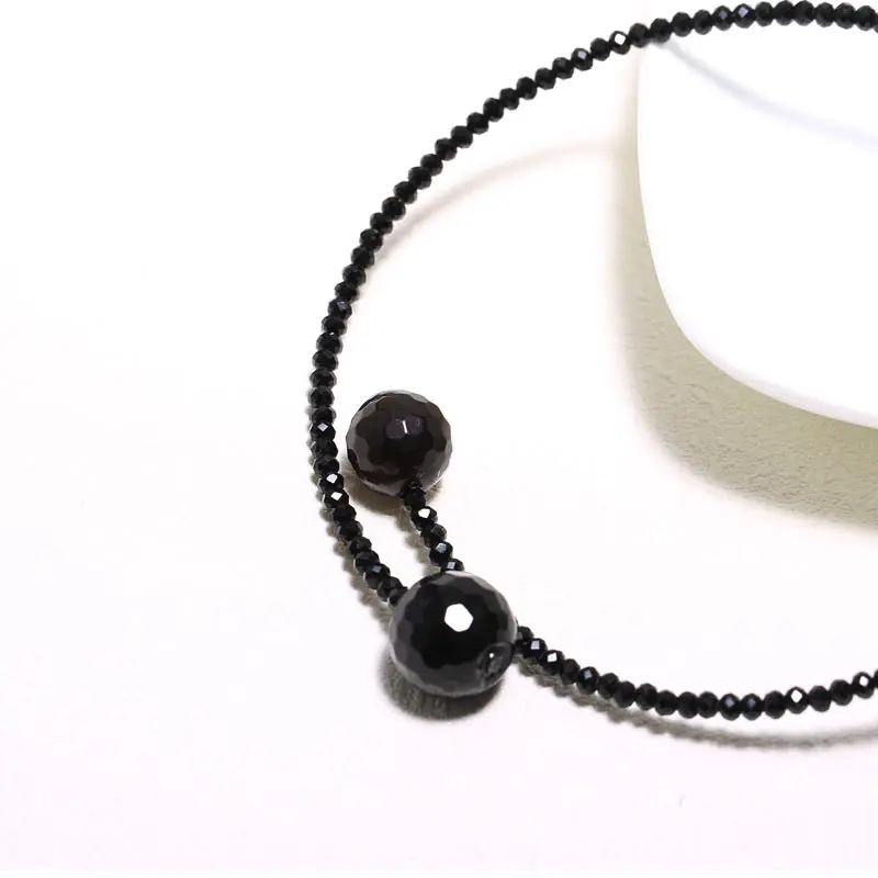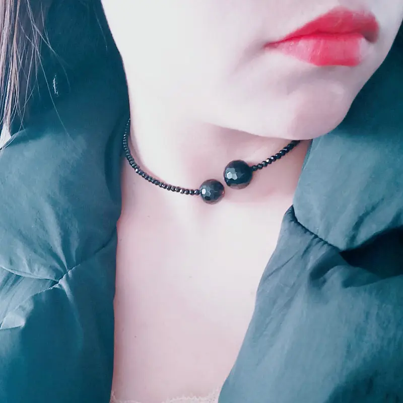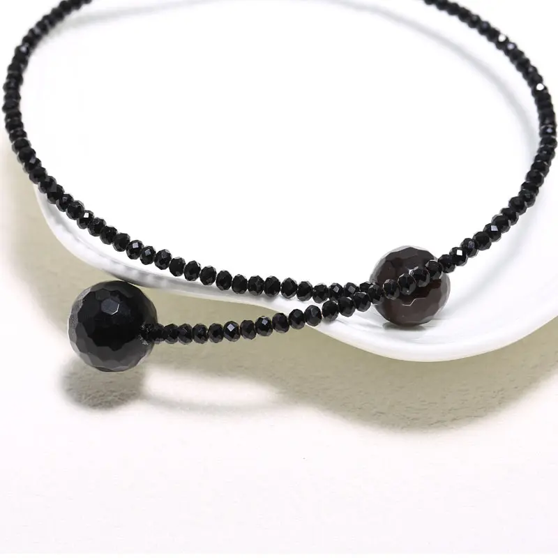 Black Crystal Collar Big Crystal 14-16 mm, Small Crystal Size 3 mm Crystal Collar , Sent to Mother